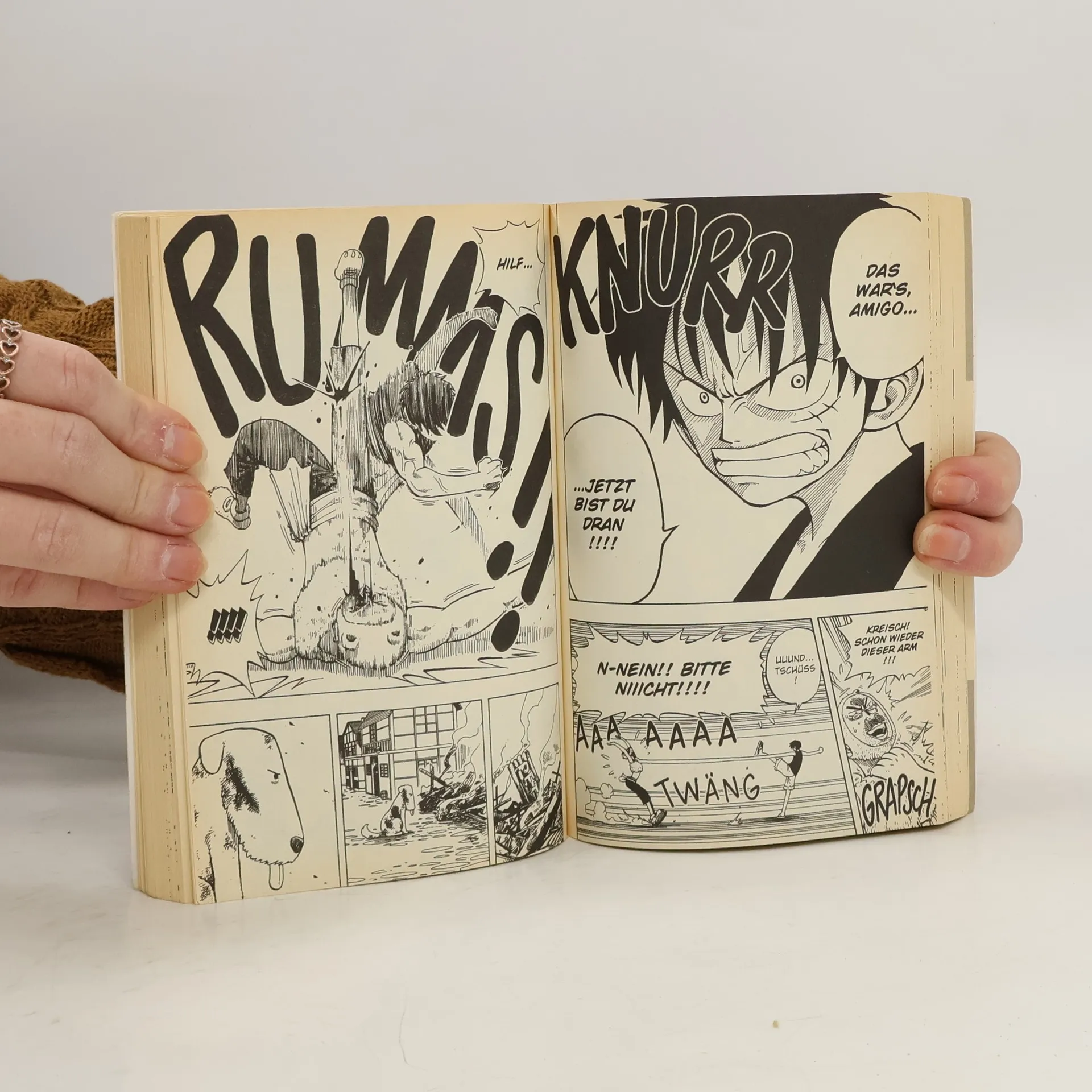 Der beliebteste Manga der Welt! Erlebe die Geschichte des zukünftigen Königs der Piraten in einer unvergleichlichen Geschichte voller Action, Abenteuer, Dramatik, Freundschaft und Humor. Mit über 500 Millionen verkauften Bänden weltweit ist One Piece die meistverkaufte Mangaserie der Geschichte! Auf der Suche nach einer geeigneten Mannschaft macht sich Ruffy mit Zorro zusammen auf den Weg zur Grand Line. Doch auf dem Weg begegnen sie der Diebin Nami, die Piraten beklaut und Buggy, dem Clown, einem berüchtigten Piraten, die Seekarte zur Grand Line klauen will. Da Nami auch navigieren kann, will Ruffy sie unbedingt im Team haben und macht sich damit Buggy zum Feind... Für Fans von Naruto, Dragon Ball, My Hero Academia und Fairy Tail! Weitere Infos: - Anime-Serie bei Crunchyroll, Wakanim und Anime on Demand - bisher 13 Anime-Kinofilme - DVD/BD bei Kazé - Live-Action-Netflixserie geplant - diverse Videospiele - ab 10 Jahren