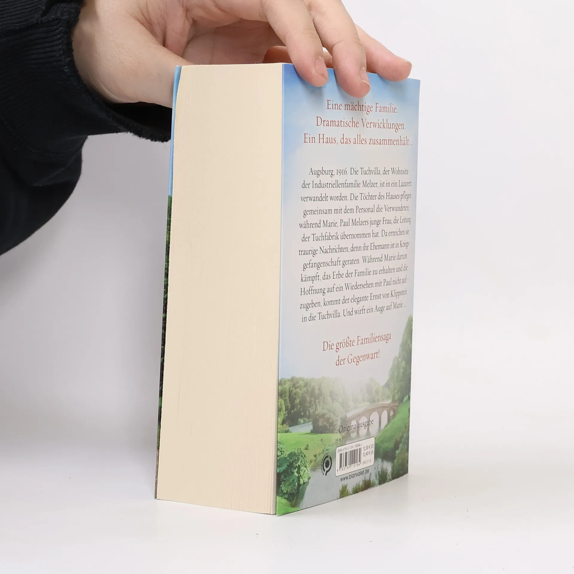 Eine mächtige Familie. Dramatische Verwicklungen. Ein Haus, das mehr als ein Geheimnis birgt. Augsburg, 1916. Die Tuchvilla, der Wohnsitz der Industriellenfamilie Melzer, ist in ein Lazarett verwandelt worden. Die Töchter des Hauses pflegen gemeinsam mit dem Personal die Verwundeten, während Marie, Paul Melzers junge Frau, die Leitung der Tuchfabrik übernommen hat. Da erreichen sie traurige Nachrichten: Ihr Schwager ist an der Front gefallen, ihr Ehemann in Kriegsgefangenschaft geraten. Während Marie darum kämpft, das Erbe der Familie zu erhalten und die Hoffnung an ein Wiedersehen mit Paul nicht aufzugeben, kommt der elegante Ernst von Klippstein in die Tuchvilla. Und wirft ein Auge auf Marie … SPIEGEL-Bestsellerautorin Anne Jacobs bei Blanvalet: Die Tuchvilla-Saga: 1. Die Tuchvilla 2. Die Töchter der Tuchvilla 3. Das Erbe der Tuchvilla 4. Rückkehr in die Tuchvilla Die Gutshaus-Saga: 1. Das Gutshaus. Glanzvolle Zeiten 2. Das Gutshaus. Stürmische Zeiten 3. Das Gutshaus. Zeit des Aufbruchs