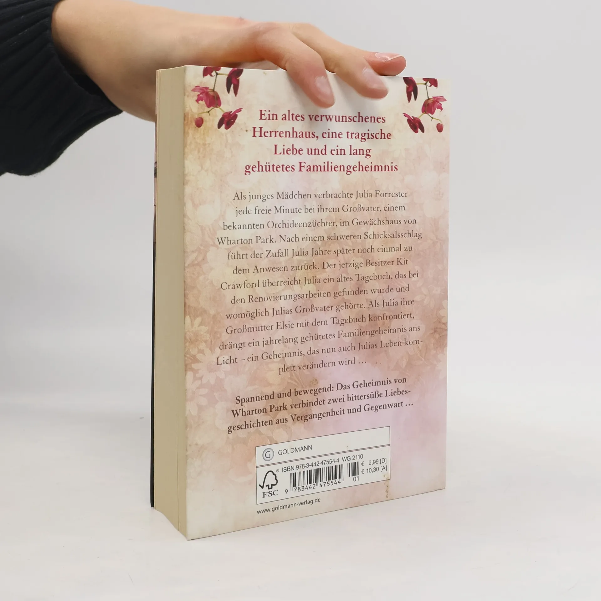 Jedes Haus hat sein Geheimnis. Und jede Liebe ihren Preis Als junges Mädchen verbrachte Julia Forrester jede freie Minute bei ihrem Großvater, einem bekannten Orchideenzüchter, im Gewächshaus von Wharton Park. Nach einem schweren Schicksalsschlag führt der Zufall Julia Jahre später noch einmal zu dem Anwesen zurück. Der jetzige Besitzer Kit Crawford überreicht ihr ein altes Tagebuch, das bei den Renovierungsarbeiten gefunden wurde und womöglich Julias Großvater gehörte. Als Julia ihre Großmutter Elsie mit dem Tagebuch konfrontiert, drängt ein jahrelang gehütetes Familiengeheimnis ans Licht, das auch Julias Leben komplett verändern wird …