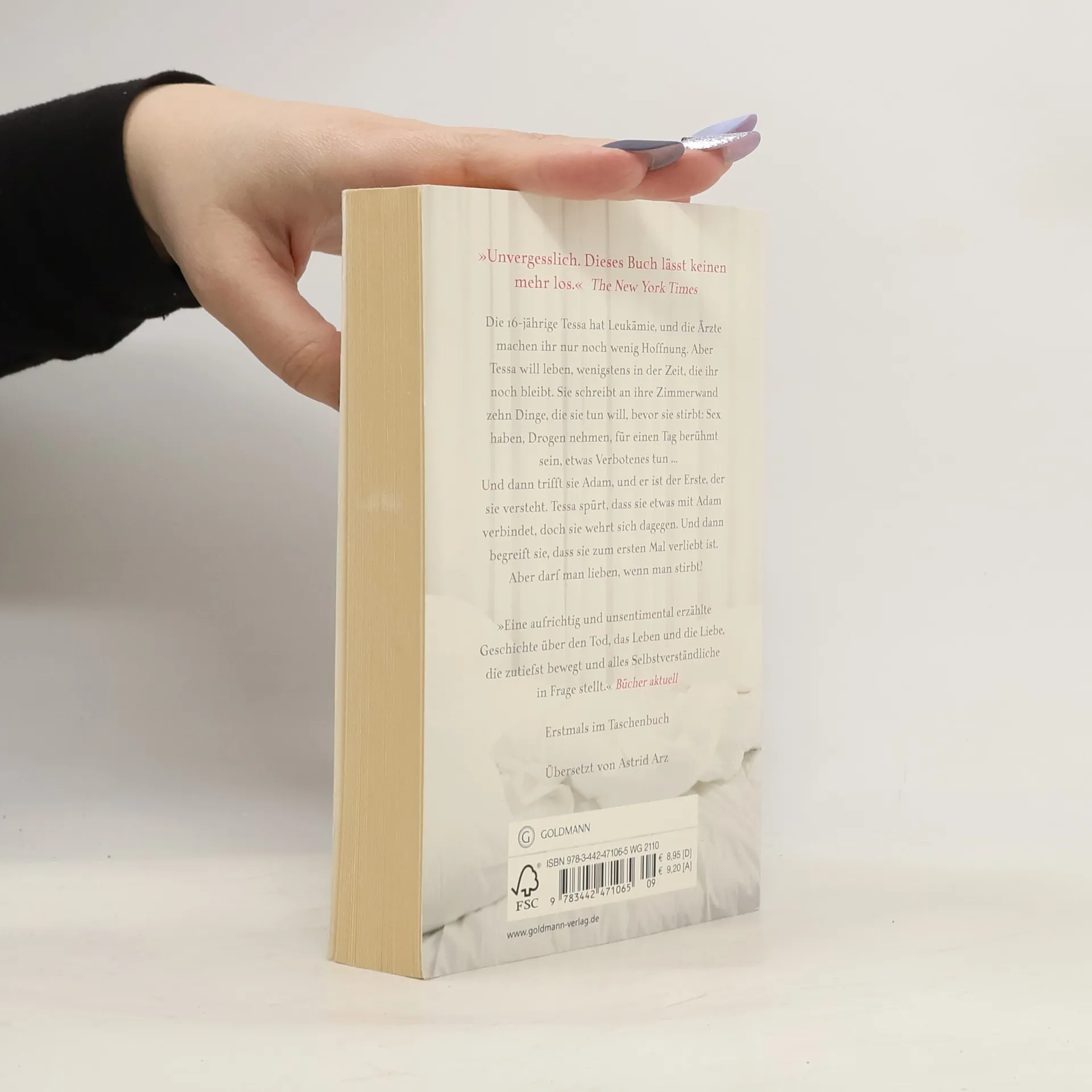 Eine Geschichte über den Tod und die Liebe – glaubwürdig, herzzerreißend und von überwältigender Ausdrucksstärke Die 16-jährige Tessa hat Leukämie, und die Ärzte machen ihr nur noch wenig Hoffnung. Aber Tessa will leben, wenigstens in der Zeit, die ihr noch bleibt. Sie schreibt an ihre Zimmerwand zehn Dinge, die sie tun will, bevor sie stirbt: Sex haben, Drogen nehmen, für einen Tag berühmt sein, etwas Verbotenes tun ... Und dann trifft sie Adam, und er ist der Erste, der sie versteht. Tessa spürt, dass sie etwas mit Adam verbindet, doch sie wehrt sich dagegen. Und dann begreift sie, dass sie zum ersten Mal verliebt ist. Aber darf man lieben, wenn man stirbt?