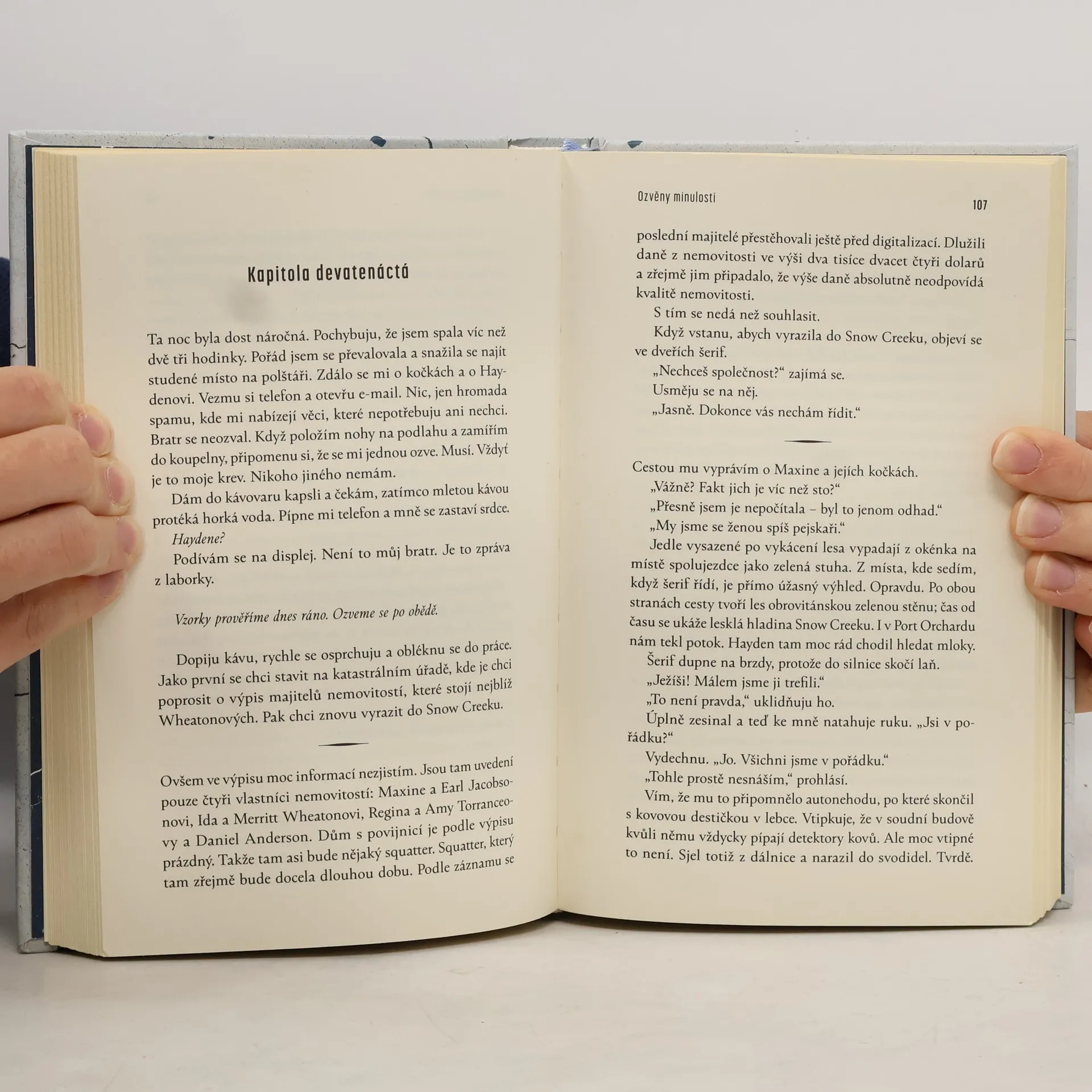 Když Ruth Turnerová vejde do kanceláře šerifa a tvrdí, že její sestra Ida Wheatonová je už déle než měsíc nezvěstná, instinkty detektiva Megan Carpenterové říkají, že je třeba udělat víc, než jen podat hlášení. Spěchá k Idinu statku v kopcích nad Snow Creek a najde její dospívající děti samotné a vyděšené. Nemůže si nevšimnout, že tu není televize, žádné videohry, nic z vnějšího světa. Cosi na rodině Wheatonových nesedí a Megan se vrací bolestné vzpomínky z dětství.Pak je v opuštěném pickupu poblíž domu Wheatonových objeveno tělo a Megan je přesvědčena, že spolu případy souvisí. A aby mohla dopadnout vraha, musí nejprve odhalit tajemství izolované komunity Snow Creek. Sama má ale svá vlastní tajemství...Vzadu v její skříni je schovaná krabice kazet s nahrávkami jejích terapeutických sezení před více než třinácti lety. Dokáže se konečně postavit minulosti? A pomůže jí znovuprožití vlastního bolestného příběhu vyřešit složitý případ, který se rozplétá v kopcích nad Snow Creek, než bude ztracen další nevinný život?