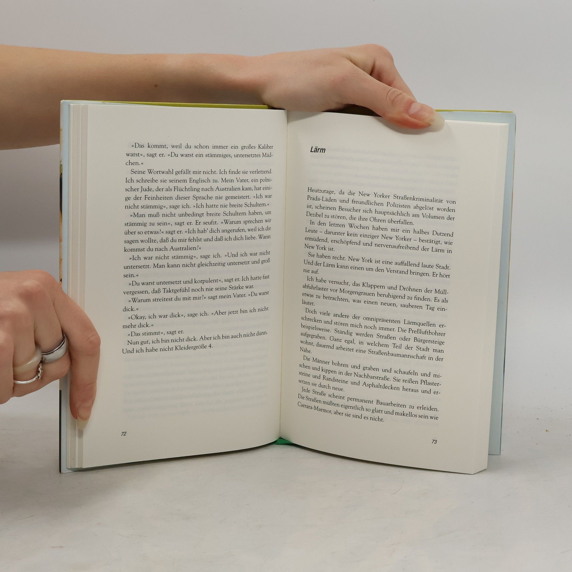 Anhand von scheinbar alltäglichen Situationen erzählt Lily Brett vom Leben in New York. Ob sie den Besuch in einem Schönheitssalon beschreibt oder ein Telefongespräch mit ihrem Vater, ihre Texte zeichnen stets ein humorvolles Bild der Stadt und ihres Lebensgefühls; sie fügen sich aber gleichzeitig auch zu einem Selbstportrait der Autorin, die in New York lebt und seit Mai 1999 in der Wochenzeitung 'Die Zeit' über das Leben in dieser Metropole schreibt.
