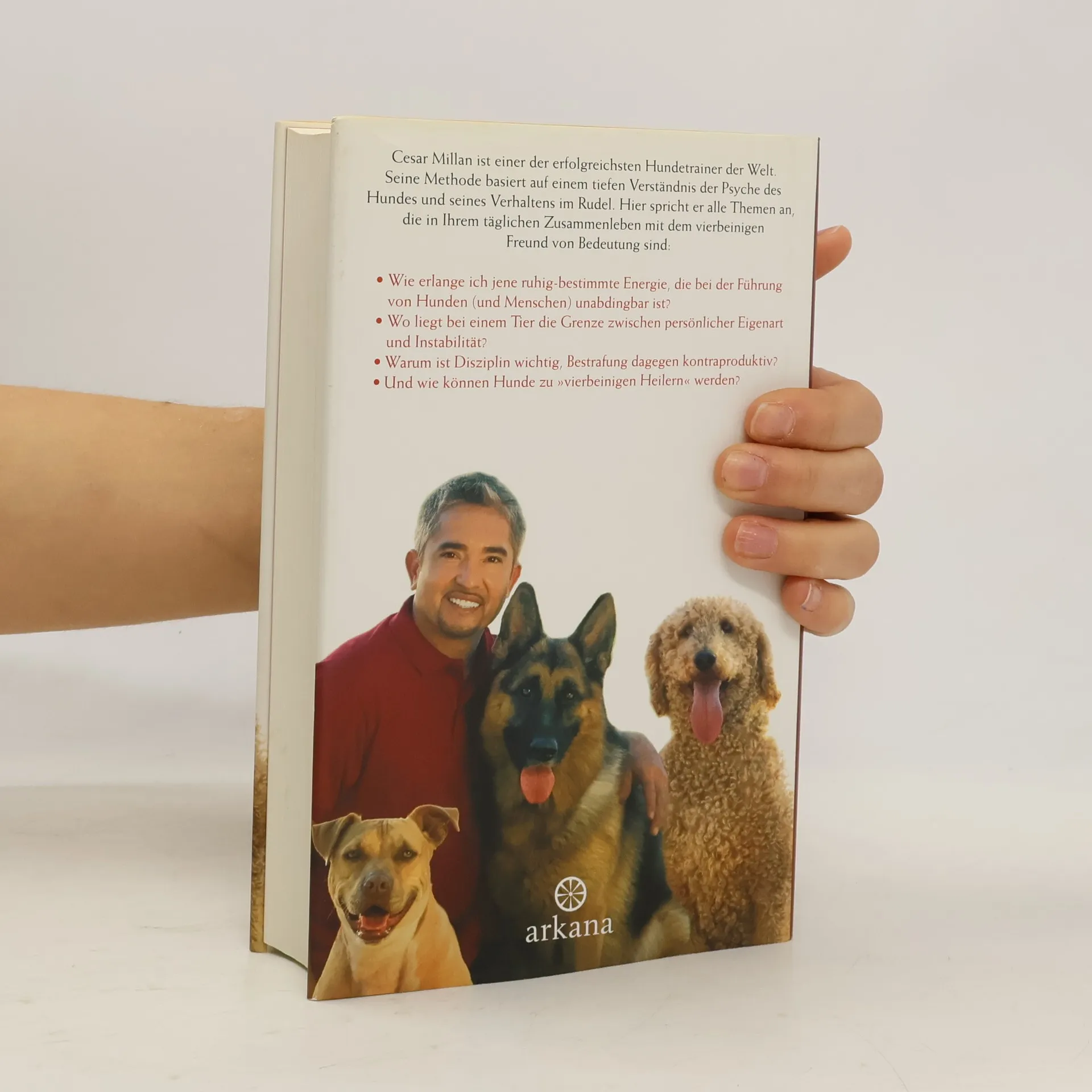 Neue Tipps vom HundeflüstererDer renommierte Hundetrainer und Bestsellerautor Cesar Millan beantwortet in seinem zweiten Buch die wichtigsten Fragen, die einen Hundefreund bewegen: Wie erlange ich jene ruhig-bestimmte Energie, die bei der Führung von Hunden (und Menschen) unabdingbar ist? Wo liegt bei einem Tier die Grenze zwischen persönlicher Eigenart und Instabilität? Warum ist Disziplin wichtig, Bestrafung dagegen kontraproduktiv? Wann sind Leine und Geschirr angemessen? Was ist beim Umgang mit Hundewelpen zu beachten? Und wie können Hunde zu „vierbeinigen Heilern“ werden? Der als „Hundeflüsterer“ weit über die USA hinaus bekannte Millan weiß: Wer seinen Hund zu führen weiß, kann in der Regel auch andere Menschen anleiten und – vielleicht noch wichtiger – sich selbst.• Der Autor lebt seit seiner Kindheit mit Hunden und gilt als der Hundeexperte mit eigener Sendung auf National Geographic TV• Für alle, die jenseits von stupidem Hundetraining die Psyche ihrer Vierbeiner wirklich verstehen wollen