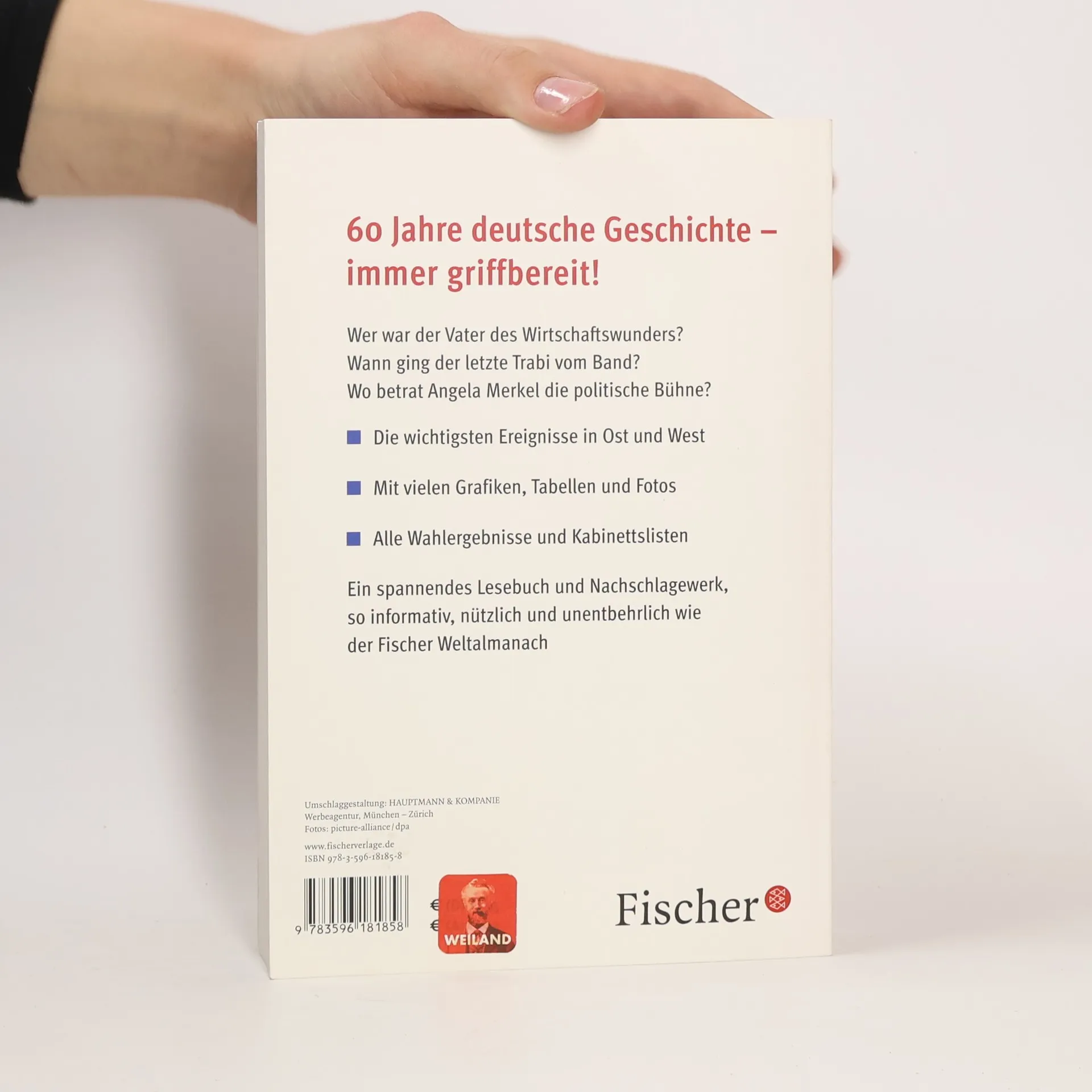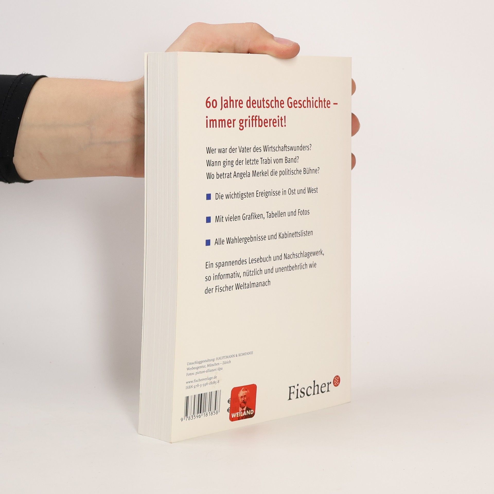 60 Jahre deutsche Geschichte - immer griffbereit! Wer war der Vater des Wirtschaftswunders? Wann ging der letzte Trabi vom Band? Wo betrat Angela Merkel die politische Bühne? - Die wichtigsten Ereignisse in Ost und West - Gespickt mit zahlreichen Grafiken, Tabellen und Fotos - alle Wahlergebnisse und Kabinettslisten Ein spannendes Lesebuch und Nachschlagewerk, so informativ, nützlich und unentbehrlich wie der Fischer Weltalmanach