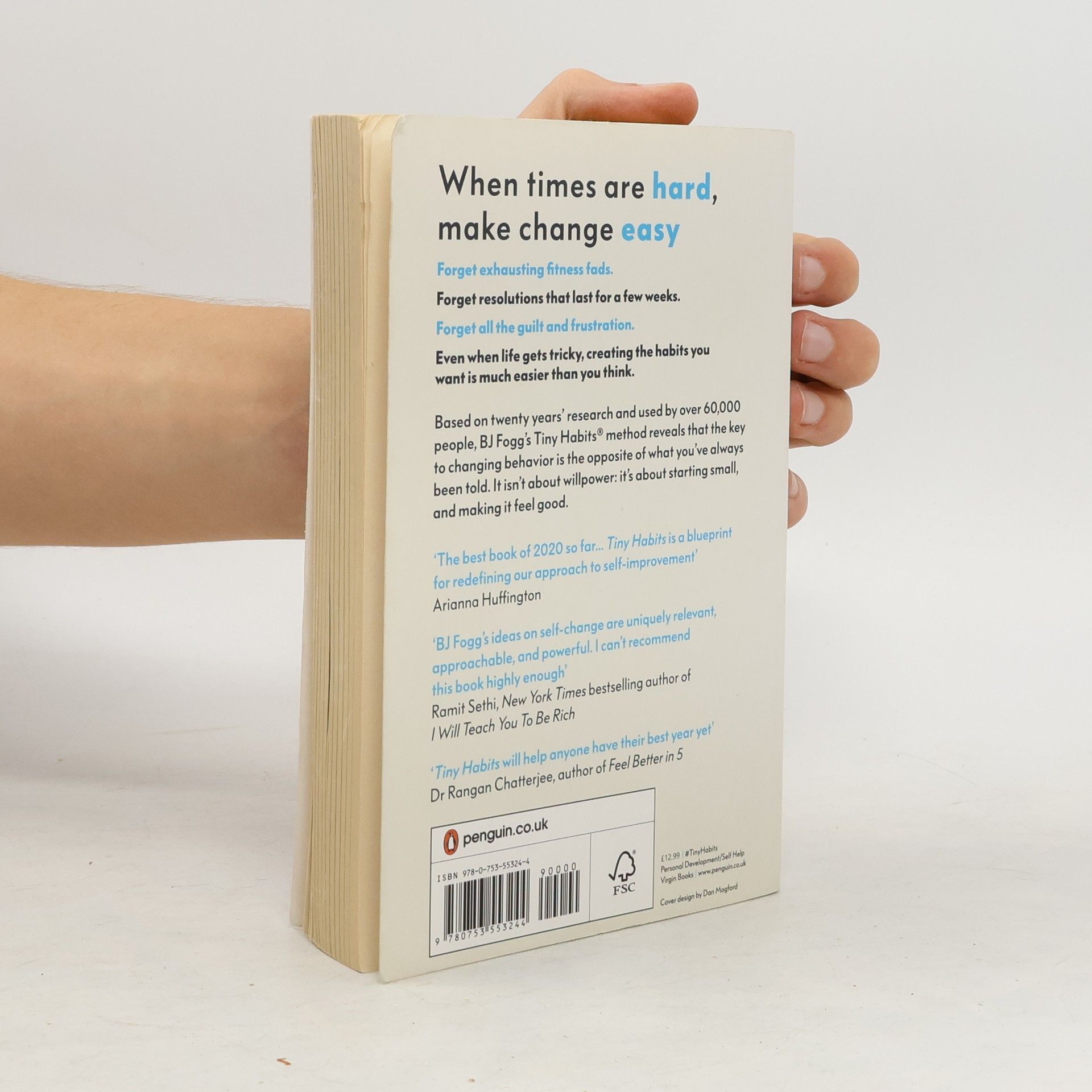 Improving your life is much easier than you think. Whether it’s losing weight, sleeping more, or restoring your work/life balance – the secret is to start small.For years, we’ve been told that being more healthy and productive is a matter of willpower: that we should follow the latest fad and make constant changes to our lifestyles. But whether in our diets, fitness plans or jobs, radical overhauls never work. Instead we should start with quick wins ― and embed new, tiny habits into our everyday routines.The world expert on this is Silicon Valley legend BJ Fogg, pioneering research psychologist and founder of the iconic Behaviour Design Lab at Stanford. Now anyone can use his science-based approach to make changes that are simple to achieve and sticky enough to last.In the hugely anticipated Tiny Habits , BJ Fogg shows us how to change our lives for the better, one tiny habit at a time. Based on twenty years research and his experience coaching over 40,000 people, it cracks the code of habit formation. Focus on what is easy to change, not what is hard; focus on what you want to do, not what you should do. At the heart of this is a startling truth ― that creating happier, healthier lives can be easy, and surprisingly fun.