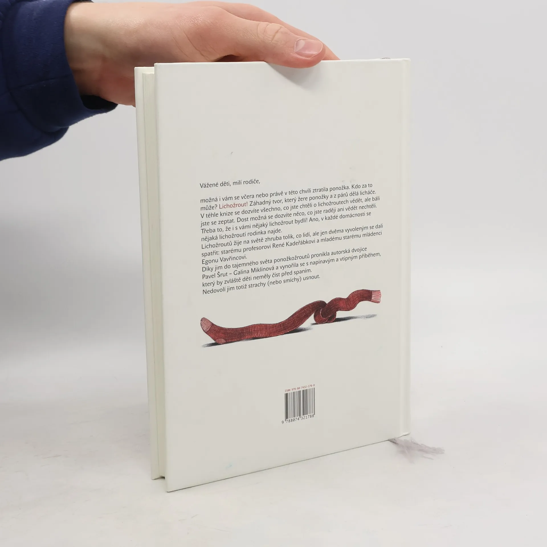 Je to nejobratnější lupič všech dob a dosud nikdy nebyl dopaden. Možná i vám se včera nebo právě v této chvíli ztratila ponožka. Kdo za to může? Lichožrout! Záhadný tvor, který žere ponožky a z párů dělá licháče. Do jejich tajemného světa pronikla autorská a ilustrátorská dvojice Pavel Šrut - Galina Miklínová a vynořila se s napínavým a vtipným příběhem jedné lichožroutí rodinky, starého mládence pana Vavřince a malého nešiky lichožrouta Hihlíka.
