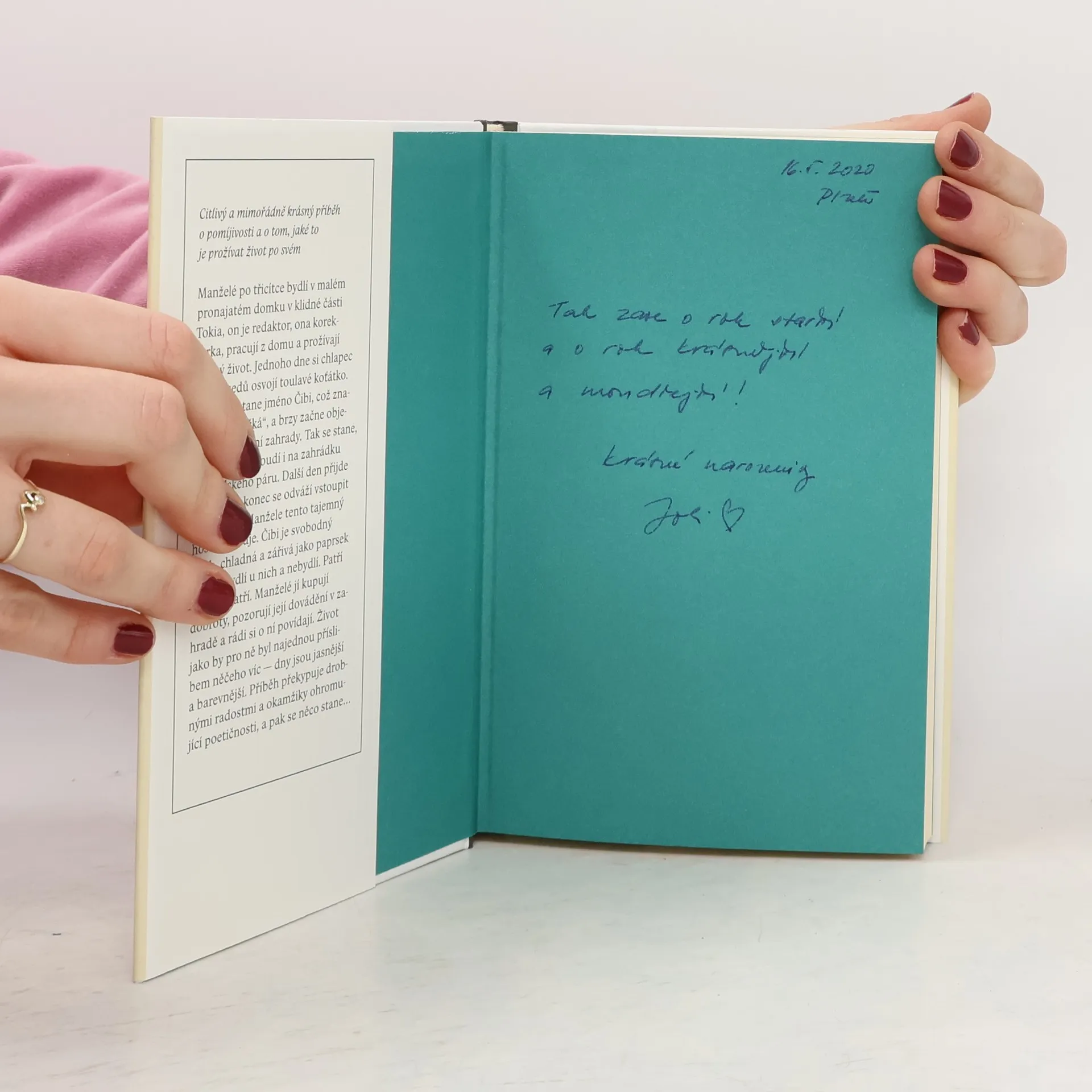 Citlivý a mimořádně krásný příběh o pomíjivosti života a o tom, jaké to je prožívat ho po svém. Manželé po třicítce bydlí v malém pronajatém domku v klidné části Tokia, on je redaktor, ona korektorka, pracují z domu a prožívají klidný život. Jednoho dne si chlapec od sousedů osvojí toulavé koťátko. Kočka dostane jméno Čibi, což znamená „maličká“, a brzy začne objevovat sousední zahrady. Tak se stane, že jednou zabloudí i na zahrádku manželského páru. Další den přijde znovu a nakonec se odváží vstoupit do domku. Manžele tento tajemný host fascinuje. Čibi je svobodný duch, chladná a zářivá jako paprsek světla. Bydlí u nich a nebydlí. Patří jim a nepatři. Manželé jí kupují dobroty, pozorují její dovádění v zahradě a rádi si o ní povídají. Život jako by pro ně byl najednou příslibem něčeho víc — dny jsou jasnější a barevnější. Příběh překypuje drobnými radostmi a okamžiky ohromující poetičnosti, a pak se něco stane…