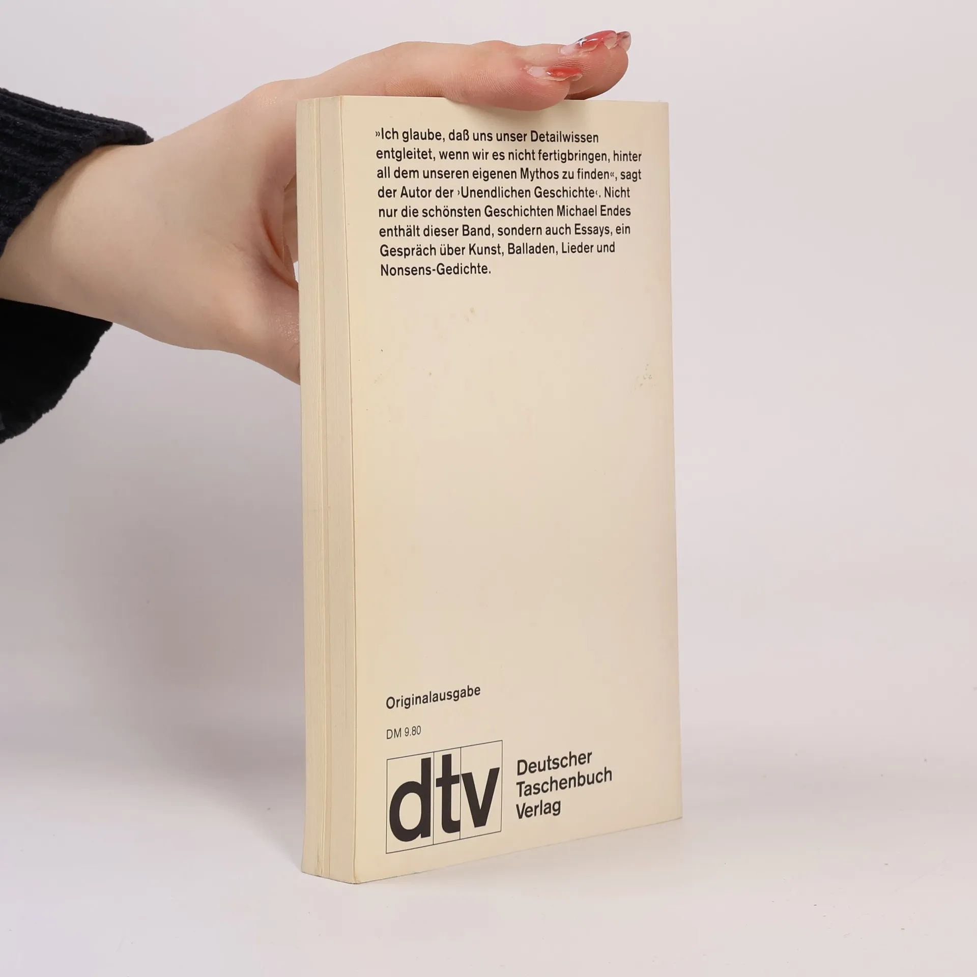 "Ich glaube, daß uns unser Detailwissen entgleitet, wenn wir es nicht fertigbringen, hinter all dem unseren eigenen Mythos zu finden", sagt der Autor der 'Unendlichen Geschichte'. Nicht nur die schönsten Geschichten Michael Endes enthält dieser Band, sondern auch Essays, ein Gespräch über Kunst, Balladen, Lieder und Nonsens-Gedichte.