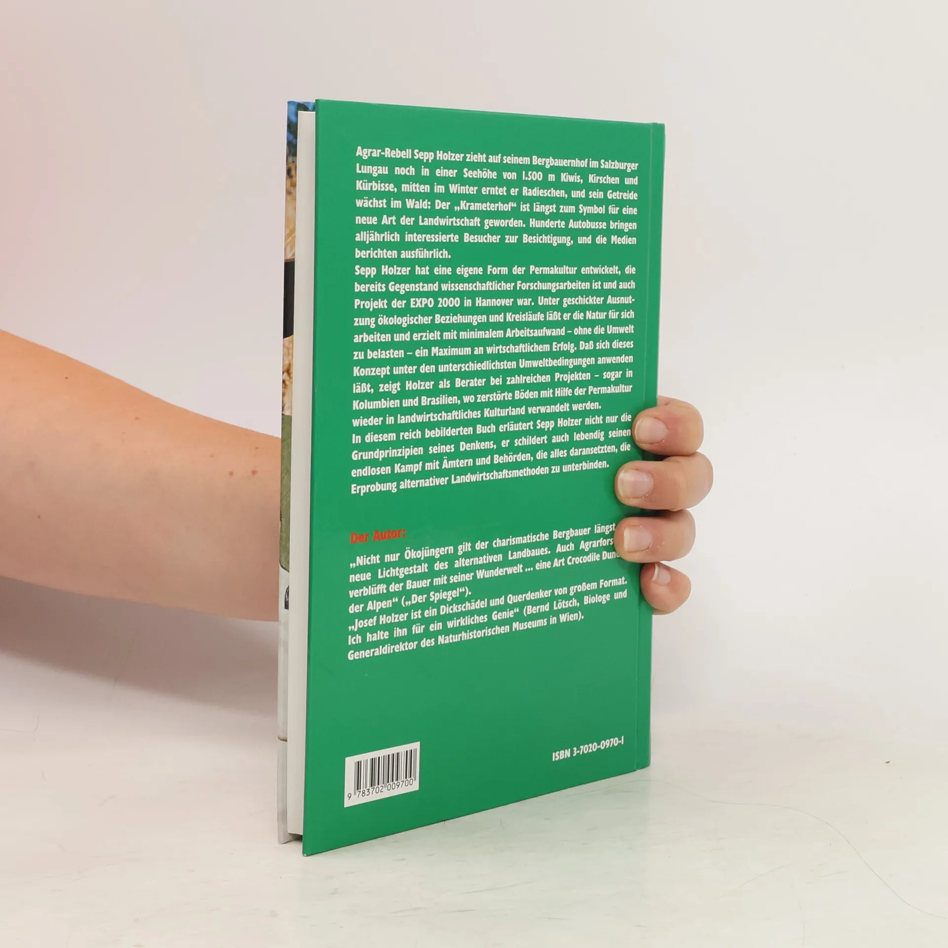 Agrar-Rebell Sepp Holzer bewirtschaftet einen Bergbauernhof in 1.500 m Höhe, wo er Kiwis, Kirschen und Kürbisse anbaut und sogar im Winter Radieschen erntet. Sein „Krameterhof“ ist ein Symbol für innovative Landwirtschaft und zieht jährlich Hunderte von Besuchern an. Holzers Permakulturansatz wurde bereits wissenschaftlich untersucht und war Teil der EXPO 2000 in Hannover. Durch geschickte Nutzung ökologischer Beziehungen erzielt er mit minimalem Arbeitsaufwand und ohne Umweltbelastung maximalen wirtschaftlichen Erfolg. Sein Konzept hat sich unter verschiedenen Umweltbedingungen bewährt, was er als Berater in Projekten in Kolumbien, Ecuador und Brasilien demonstrierte, wo er degradierte Böden mit Permakultur revitalisierte. In diesem Buch erklärt Holzer die Grundprinzipien seines Denkens und teilt Erkenntnisse aus seiner genauen Naturbeobachtung. Er beschreibt auch seinen Kampf gegen Ämter, die alternative Landwirtschaftsmethoden behindern wollen. Eine Vielzahl von Fotos zeigt die vielfältige Welt des „Krameterhofs“ mit Fischteichen, frei laufenden Tieren und Heilpflanzengärten.