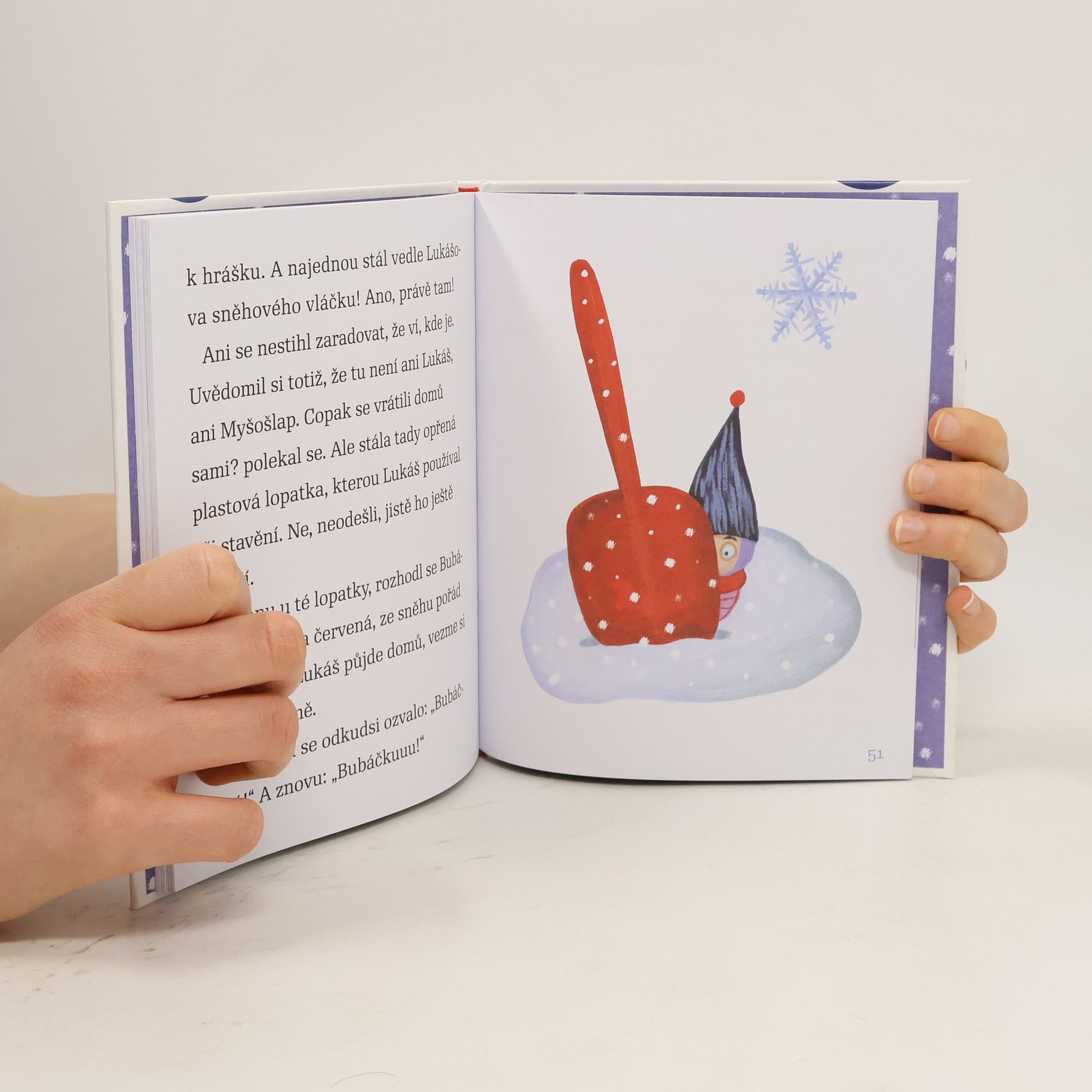 Venku napadl sníh a Bubáček má hotové Vánoce - tohle je totiž jeho první zima! A hodlá si ji pořádně užít. Společně s Lukášem vyrazí ven, aby se pořádně zkoulovali, užili si jízdu na sáňkách a postavili nejlepšího sněhuláka. Zimní radovánky nakonec vylákají ven i Myšošlapa, kterému se do chladného počasí nejdřív moc nechtělo. Jenže Bubáček v jednu chvíli zjistí, že je sám v hlubokém sněhu a nemůže se vyhrabat. Podaří se ho zachránit včas?