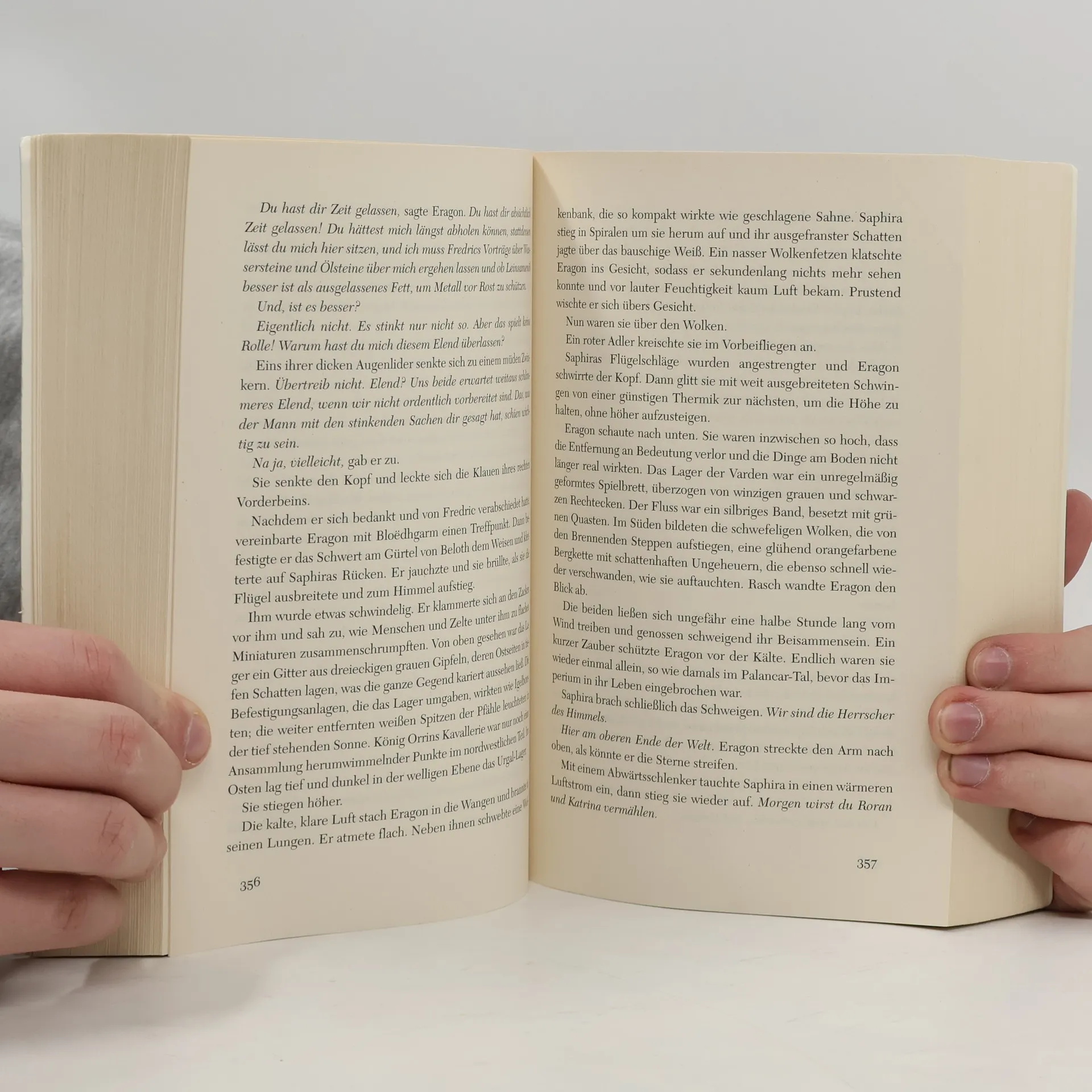 Schlachten, große Abenteuer und ein Tod, der alles verändert Über Alagaësia brauen sich erneut die dunklen Wolken des Krieges zusammen. Ohne die magischen Fähigkeiten Eragons sind die Varden, Elfen und Zwerge verloren. Aber der Drachenreiter will seinen Schwur nicht brechen: Er muss Katrina, die Geliebte seines Cousins Roran, aus den Fängen der Ra’zac befreien. Und so tritt er eine abenteuerliche Reise an, die ihn und seinen Drachen Saphira weit über die Grenzen des Königreiches führen wird.