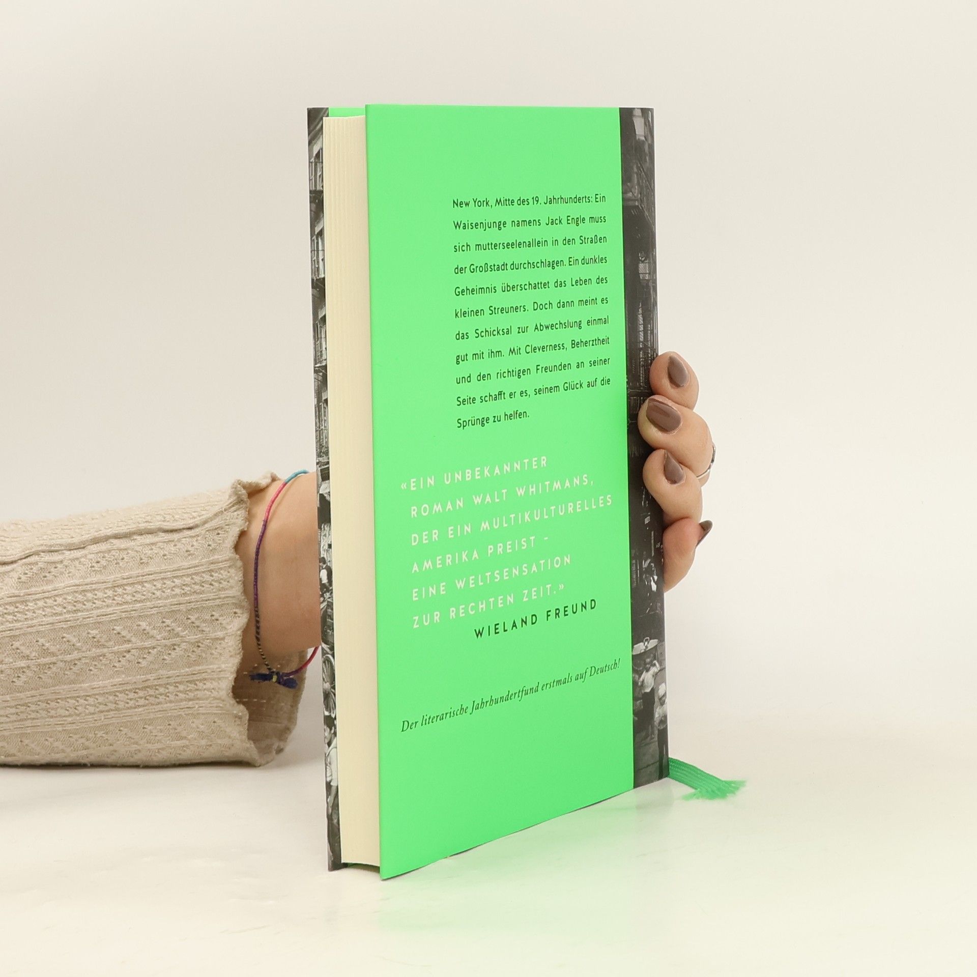 „Ein unbekannter Roman Walt Whitmans, der ein multikulturelles Amerika preist – eine Weltsensation zur rechten Zeit.“ Wieland Freund Humorvoll-lakonisch erzählt Walt Whitman eine klassische Aufstiegsgeschichte in der Tradition des großen Charles Dickens, allerdings in der Neuen Welt, mitten in New York. Er schildert die Schattenseiten der rasant wachsenden Metropole, verschweigt weder das Elend der Notleidenden noch die Korrumpierung derer, die an der Wall Street zu schnellem Geld gekommen sind. Doch vor allem feiert er in seinem „Jack Engle“ uramerikanische und urdemokratische Tugenden: den Glauben an den unveräußerbaren Glücksanspruch des Einzelnen, die Zuversicht und den Pioniergeist der kleinen Leute, ihren Mut zur Improvisation und nicht zuletzt die alles überragende Leitidee der Einwanderernation – sich gemeinsam, ohne Ansehen von Herkunft, Stand oder Religion, aufzumachen in eine bessere Zukunft.1852 als Fortsetzungsroman im „Sunday Dispatch“ erschienen und erst 165 Jahre später als Schöpfung Walt Whitmans identifiziert – ein kleines Wunder der Weltliteratur! 2017 ist sie erstmals in deutscher Übersetzung zu entdecken, die Lebensgeschichte eines Waisenjungen, der auf den Straßen New Yorks lernt, sich mit Fäusten, flinker Zunge und viel Köpfchen zu behaupten. Keine ganz gefahrlose Sache in diesem brodelnden Eldorado der Überlebenskünstler aus aller Herren Länder ...