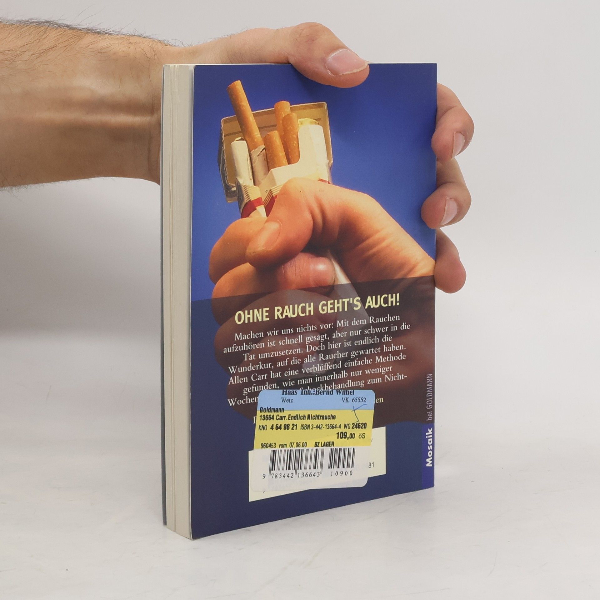 Kaum ein Raucher, der nicht schon einmal den Entschluss gefasst hat, mit dem Rauchen aufzuhören - und kaum einer, der nicht früher oder später seine guten Vorsätze wieder über den Haufen geworfen hat. All jenen, die bereit sind, mit dem blauen Dunst endgültig Schluss zu machen, zeigt dieses Buch den Weg. Mit Allen Carrs sensationeller und weltweit bekannter „Easyway“-Methode kann jeder in wenigen Wochen und ohne übermenschliche Willensanstrengung die körperliche und psychische Sucht überwinden, indem er seine Abhängigkeit kritisch hinterfragt und ihr schließlich aus Überzeugung den Rücken kehrt.