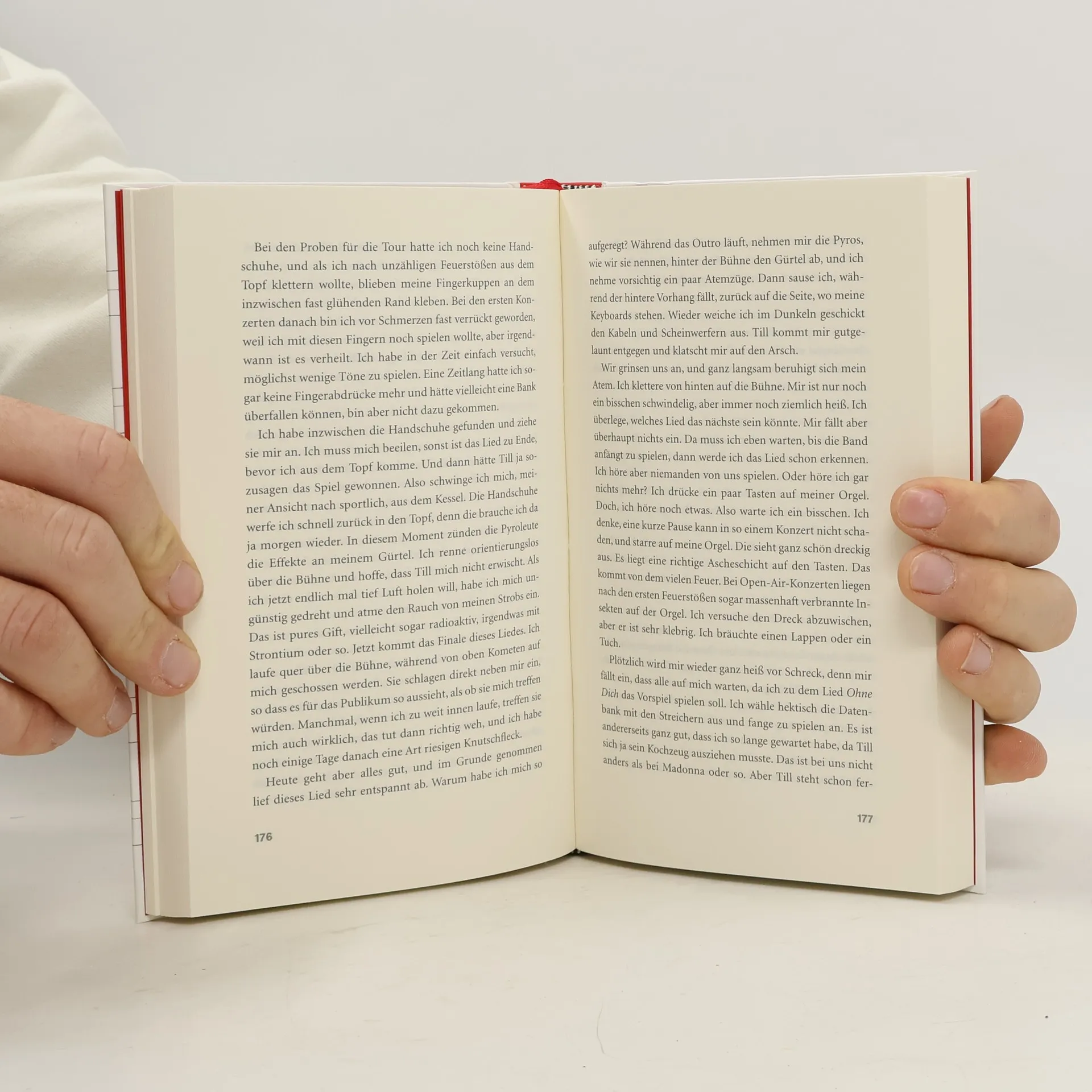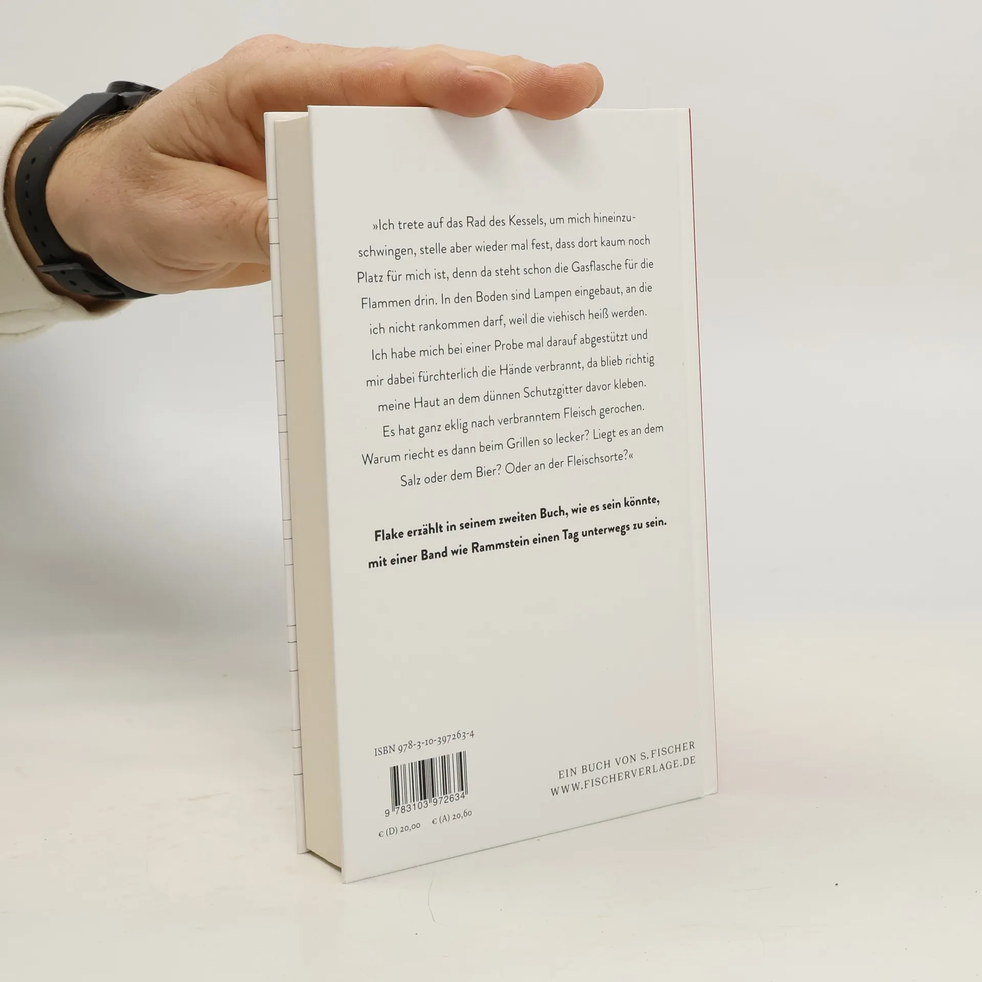 »Ich trete auf das Rad des Kessels, um mich hineinzuschwingen, stelle aber wieder mal fest, dass dort kaum noch Platz fu¨r mich ist, denn da steht schon die Gasflasche fu¨r die Flammen drin. In den Boden sind Lampen eingebaut, an die ich nicht rankommen darf, weil die viehisch heiß werden. Ich habe mich bei einer Probe mal darauf abgestu¨tzt und mir dabei fu¨rchterlich die Ha¨nde verbrannt, da blieb richtig meine Haut an dem du¨nnen Schutzgitter davor kleben. Es hat ganz eklig nach verbranntem Fleisch gerochen. Warum riecht es dann beim Grillen so lecker? Liegt es an dem Salz oder dem Bier? Oder an der Fleischsorte?« Flake erzählt in seinem zweiten Buch, wie es sein könnte, mit einer Band wie Rammstein einen Tag unterwegs zu sein.