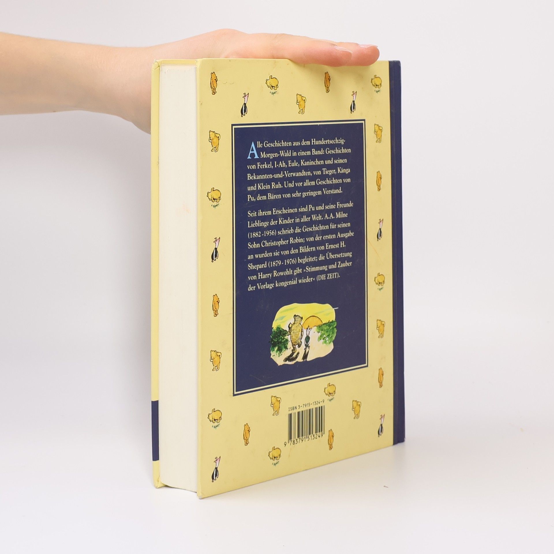 „Pu pu!“, sagte A. A. Milnes einjähriger Sohn Christopher Robin, als er zu Weihnachten seinen neuen Teddy auf dem Kamin sitzen sah. So entstand 1921 der Name für die wohl berühmteste Teddy-Bären-Geschichte der Welt: PU DER BÄR. Die Abenteuer, die Christopher Robin mit Pu und seinen Freunden erlebte, hat Milne später aufgeschrieben und veröffentlicht. Keine Frage, dass ihm die Pu-Fans allüberall dafür zutiefst dankbar sind. So ist nichts verloren gegangen von den fürchterlich aufregenden Erlebnissen mit Pu, dem liebenswerten Bären von geringem Verstand, mit dem etwas ängstlichen Ferkel, dem griesgrämigen Esel I-Ah und allen anderen hochwichtigen Persönlichkeiten aus dem Hundertsechzig-Morgen-Wald. Zum Beispiel die Geschichte damals, als Pu honiglüstern mit einem blauen Ballon hoch oben in die Baumkrone fliegen wollte und dabei versuchte - ein Bienentäuschungsmanöver! - wie eine kleine schwarze Wolke auszusehen.
