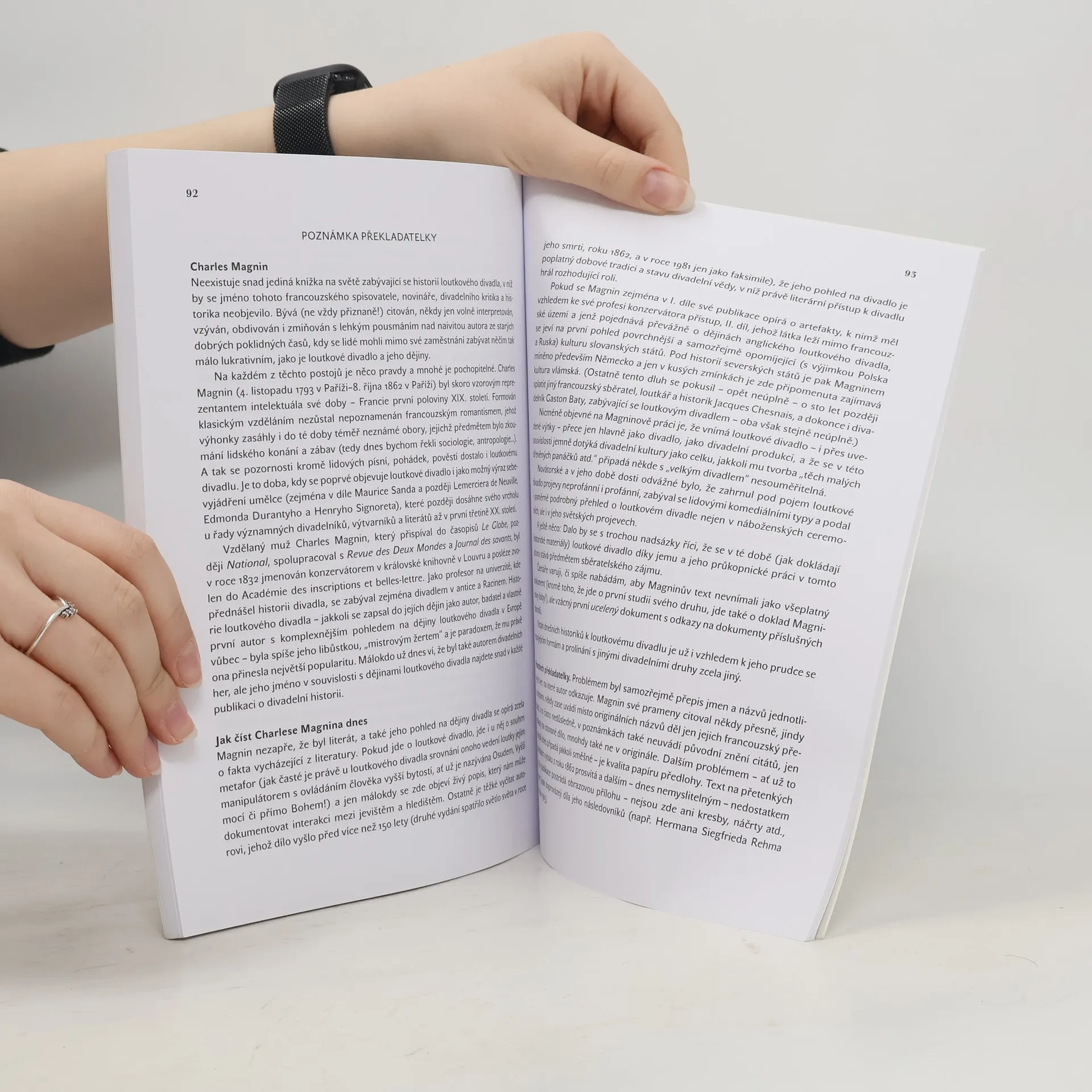 Neexistuje snad jediná publikace zabývající se historií evropského loutkového divadla, v níž by se neobjevilo jméno francouzského spisovatele a historika Charlese Magnina (1793-1862) a jeho Dějiny loutkového divadla v Evropě (1. vydání r. 1852, 2. vydání r. 1862). Magnin, profesor na univerzitě, se věnoval zejména antickému divadlu a dílu Jeana Racina, avšak jeho práce o loutkovém divadle, které pro mnohé objevoval, paradoxně přinesla největší popularitu a obdiv. První díl, vydaný v roce 2005, pokrývá historii loutkového divadla ve starověku a středověku, včetně detailního zkoumání jeho vývoje v Itálii, Španělsku, Portugalsku a nejvíce ve Francii. Druhý díl se zaměřuje na anglické loutkové divadlo a obsahuje stručný přehled o Polsku a Rusku, zatímco severské státy, zejména Německo, jsou zmíněny v souvislosti s historií převodu Faustova příběhu. Autorův zájem a dokumenty, které využíval, byly úzce spjaty s Francií. Přestože má dílo své nedostatky, je nezbytné pro historiky jako Herman Siegfried Rehm, Jacques Chesnais, a další. Dosud bylo možné se s Magninovými Dějinami seznámit pouze v citacích, nyní se však objevují v českém překladu v úplném znění poprvé.