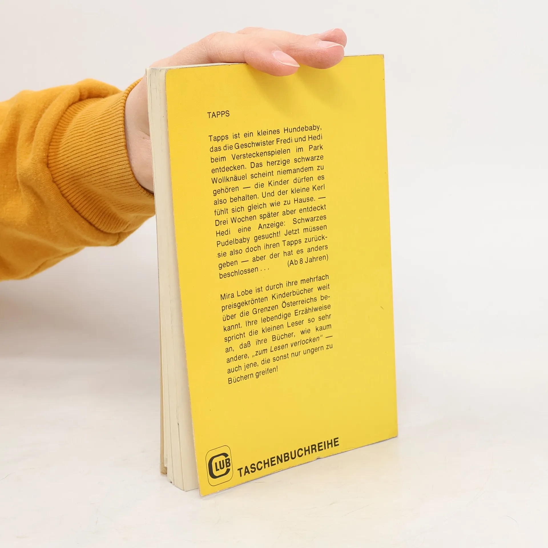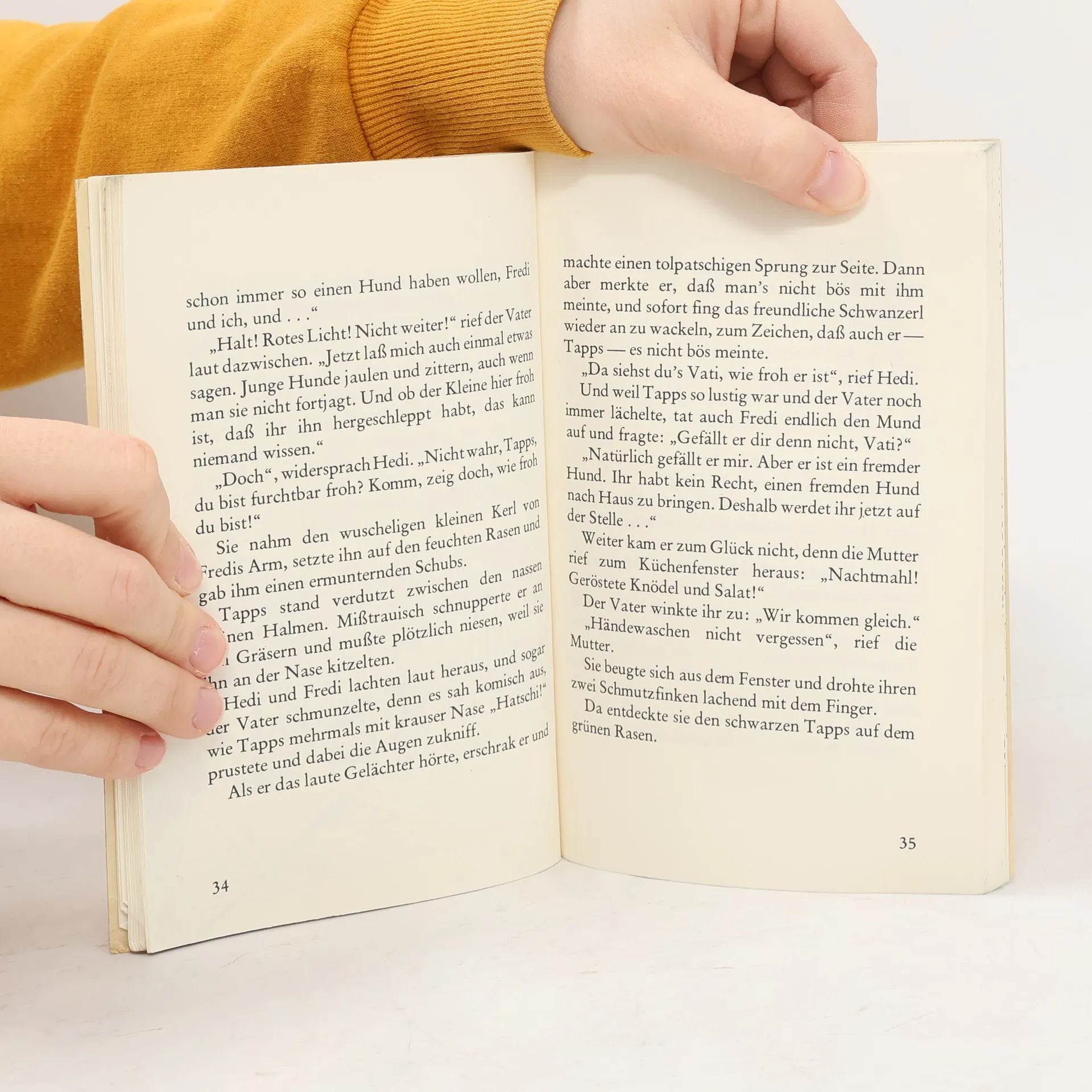 Fredi und Hedi finden beim Versteckspiel im Park unter den Büschen einen schwarzen Welpen, den sie Tapps taufen. Sie nehmen ihn mit nach Hause und hoffen ein klein wenig, dass sie ihn behalten dürfen. Schließlich weiß niemand, wem Tapps gehört. Die Eltern bestehen darauf, dass die Kinder die Häuser in der ganzen Nachbarschaft abklappern und herausfinden, wohin Tapps gehört. Ohne Erfolg. Also darf Tapps bleiben. Aber eines Tages sehen sie an einem Schaufenster eine Notiz, auf der ein Hund zu sehen ist, der wie Tapps aussieht. Ein freundlicher Herr liest ihnen den Text vor, aber das macht die Kinder gar nicht glücklich. Denn jetzt wissen sie, wohin Tapps gehört. Und daran ist nicht zu rütteln, er muss zurück. Hedi und Fredi sind so traurig, dass sie nicht einmal den versprochenen Finderlohn haben wollen. Doch die Besitzerin von Tapps hat einen ganzen Wurf junger Hunde und ein großes Herz: Am nächsten Tag bringt sie den Finderlohn vorbei – schwarz und mit vier Beinen!
