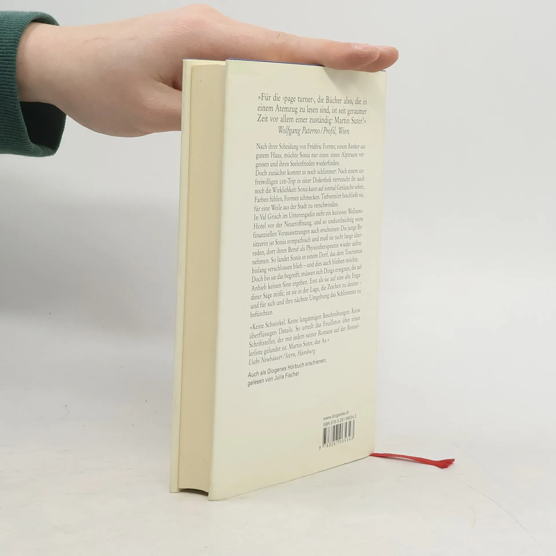 Nach ihrer Scheidung von Frédérique Forster, einem Banker aus gutem Haus, möchte Sonia nur eines: einen Alptraum vergessen und ihren Seelenfrieden wiederfinden. Doch zunächst kommt es noch schlimmer: Nach einem unfreiwilligen LSD-Trip in einer Diskothek verrutscht ihr auch noch die Wirklichkeit. Sonia kann auf einmal Geräusche sehen, Farben fühlen, Formen schmecken. Tief verstört beschließt sie, für eine Weile aus der Stadt zu verschwinden. In Val Grisch im Unterengadin steht ein kurioses Wellness-Hotel vor der Neueröffnung, und so undurchsichtig seine finanziellen Voraussetzungen auch erscheinen: Die junge Besitzerin ist Sonia sympathisch und muß sie nicht lange überreden, dort ihren Beruf als Physiotherapeutin wieder aufzunehmen. So landet Sonia in einem Dorf, das dem Tourismus bislang verschlossen blieb – und dies auch bleiben möchte. Doch bis sie das begreift, müssen sich Dinge ereignen, die auf Anhieb keinen Sinn ergeben. Erst als sie auf eine alte Engadiner Sage stößt, ist sie in der Lage, die Zeichen zu deuten – und für sich und ihre nächste Umgebung das Schlimmste zu befürchten.