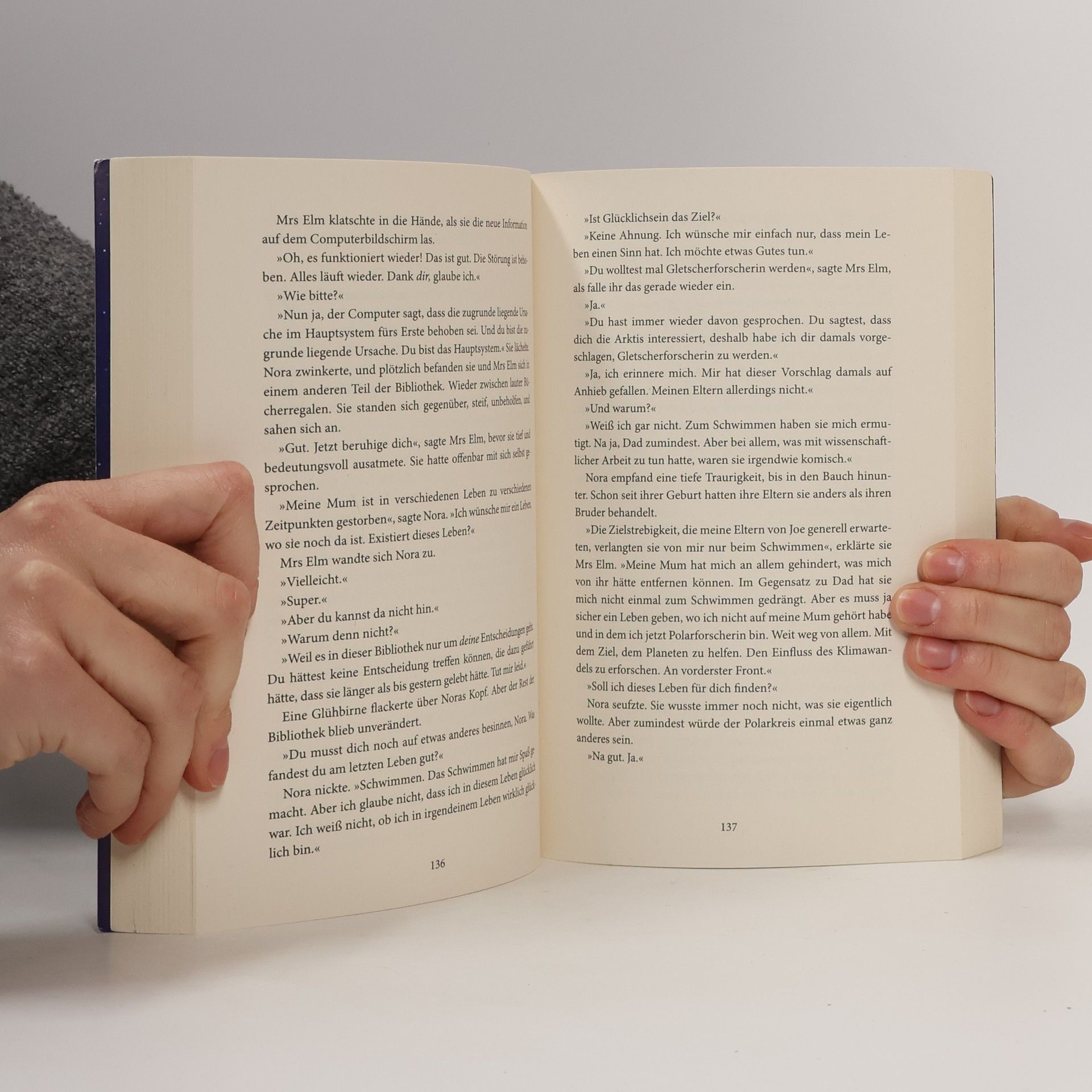 Stell dir vor, auf dem Weg ins Jenseits gäbe es eine riesige Bibliothek, gefüllt mit all den Leben, die du hättest führen können. Alles, was du jemals bereut hast, könntest du ungeschehen machen. Genau dort findet sich Nora Seed wieder, nachdem sie aus lauter Verzweiflung beschlossen hat, sich das Leben zu nehmen. An diesem Ort zwischen Raum und Zeit, an dem die Uhrzeiger immer auf Mitternacht stehen, hat sie plötzlich die Möglichkeit, all das zu ändern, was sie aus der Bahn geworfen hat. Aber kann man in einem anderen Leben glücklich werden, wenn man weiß, dass es nicht das eigene ist? Matt Haigs zauberhafter Roman erzählt davon, dass uns selbst Entscheidungen, die wir später bereuen, zu den Menschen machen, die wir sind. »Die Mitternachtsbibliothek« ist eine Liebeserklärung an all unsere Eigenheiten und Besonderheiten, an das einzige Leben, das wir haben.  Entdecken Sie auch die anderen Romane von Matt Haig bei Droemer: Der fürsorgliche Mr. Cave, Die Familie Radley, Für immer, euer Prince, Nachricht von Dad