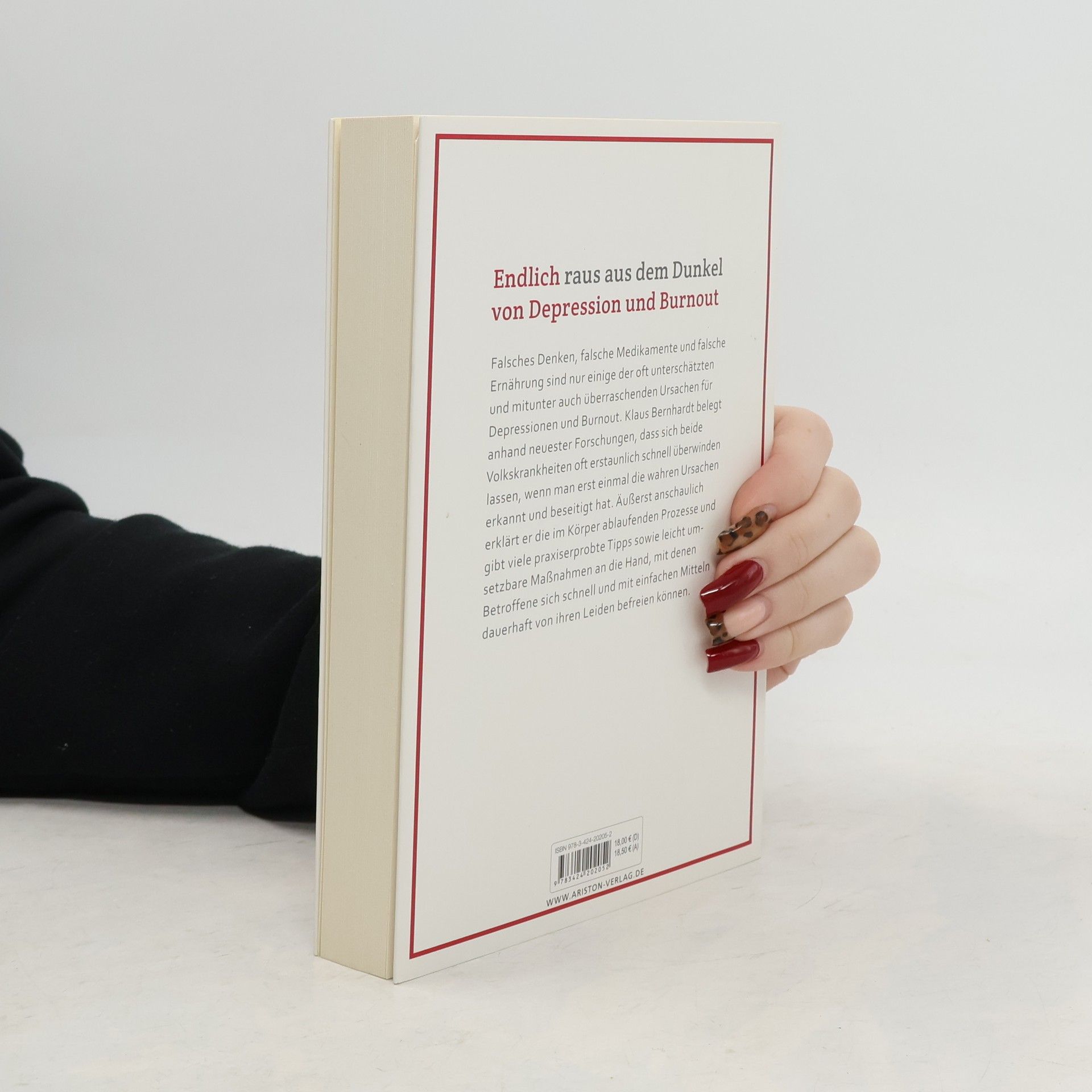 Endlich raus aus dem Dunkel der Depression Falsche Ernährung, falsche Medikamente, falsches Denken sind nur einige der oft überraschenden und unterschätzten Ursachen für die meisten Formen von Depressionen, Burnout und Angsterkrankungen. Klaus Bernhardt zeigt anhand neuester Forschungen, dass es sich bei diesen Krankheiten oft um psychische und körperliche Reaktionen auf Mangelerscheinungen und Stresssituationen handelt. Äußerst zugänglich erklärt er die im Körper ablaufenden Prozesse und gibt unzählige praxiserprobte Tipps sowie leicht umsetzbare Maßnahmen an die Hand, was Betroffene tun können, um sich mit einfachen Mitteln schnell und dauerhaft von ihren Leiden zu befreien.