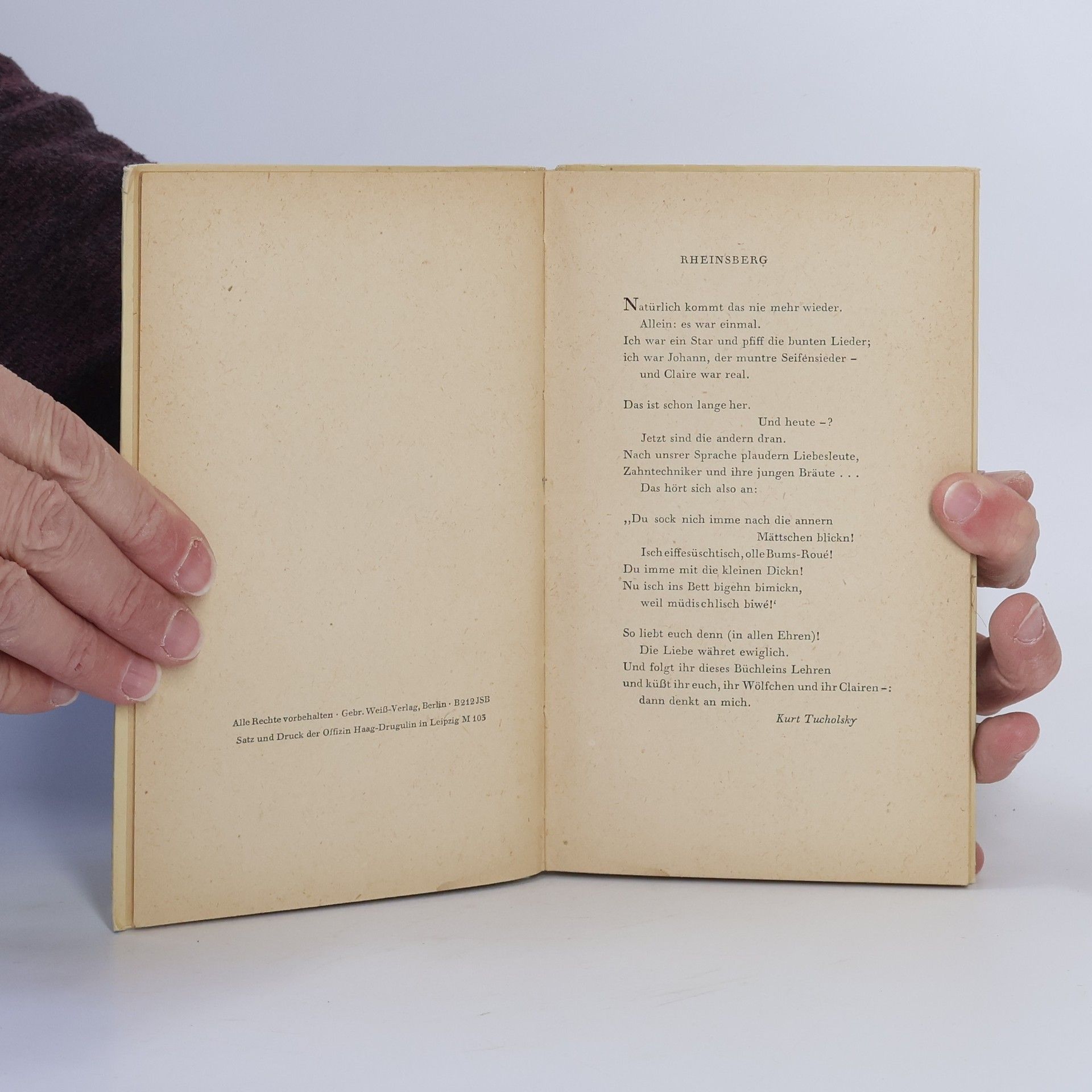 Die Geschichte einer großen LiebeDieses berühmte «Bilderbuch für Verliebte», die sommerliche Wochenendfahrt zweier junger Großstadtmenschen ins märkische Schloßstädtchen, ist voll feiner Ironie und Charme. Mit seiner Lebensfreude verkörpert das Paar eine Art Gegenwelt zur Prüderie der wilhelminischen Gesellschaft .Kurt Tucholsky begründete mit dieser zauberhaften Liebesgeschichte seinen Ruhm als Schriftsteller und bekannte später: «Was in dem Buch da ist: das weiß ich schon. Eine bessere Zeit, und meine ganze Jugend.»