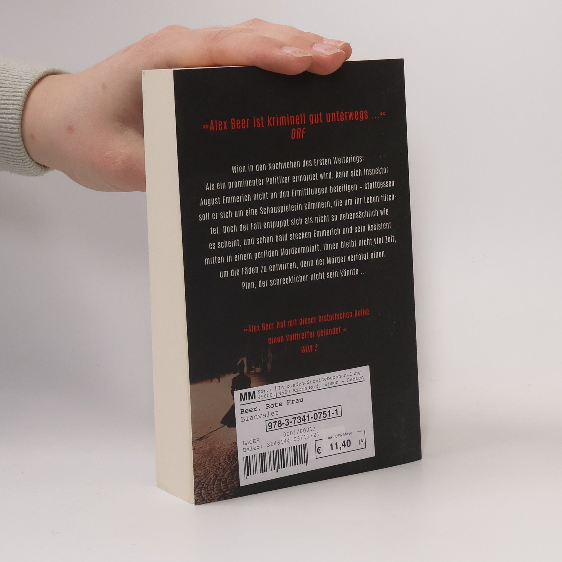 August Emmerich ermittelt wieder! Wien in den Nachwehen des Ersten Weltkriegs: Als ein prominenter Politiker ermordet wird, kann sich Inspektor August Emmerich nicht an den Ermittlungen beteiligen, sondern soll sich stattdessen um eine Schauspielerin kümmern, die um ihr Leben fürchtet. Doch der Fall entpuppt sich als nicht so nebensächlich wie es scheint, und schon bald stecken Emmerich und sein Assistent mitten in einem perfiden Mordkomplott – und ihnen bleibt nicht viel Zeit, um die Fäden zu entwirren ...Mord auf Wienerischem Pflaster – August Emmerich ermittelt:Band 1: Der zweite ReiterBand 2: Die rote FrauBand 3: Der dunkle BoteBand 4: Das schwarze BandAlle Bände sind eigenständige Fälle und können unabhängig voneinander gelesen werden.