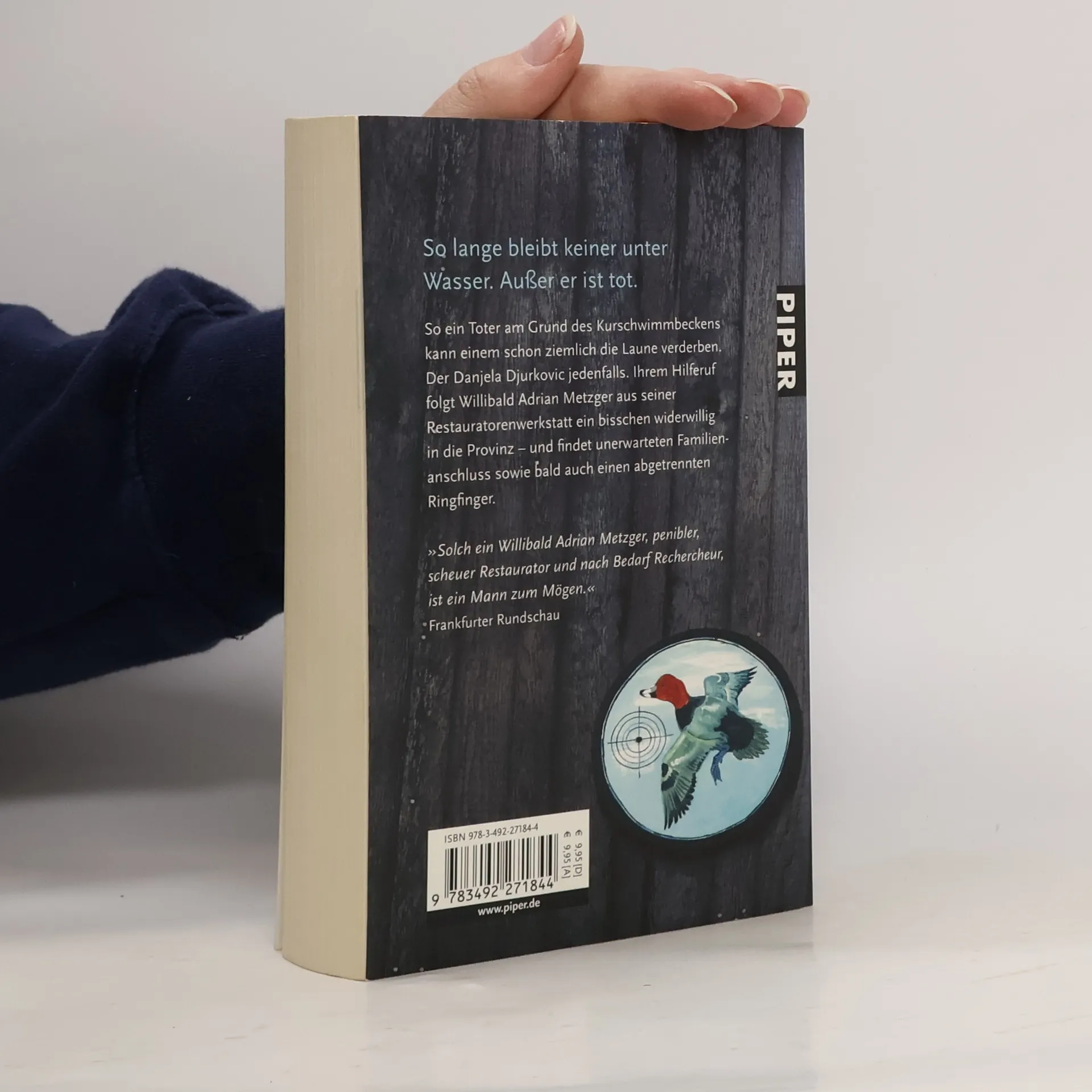So ein Toter am Grund des Kurschwimmbeckens kann einem schon ziemlich die Laune verderben. Der Danjela Djurkovic jedenfalls. Ihrem Hilferuf folgt Willibald Adrian Metzger aus seiner Restauratorenwerkstatt ein bisschen widerwillig in die Provinz – und findet unerwarteten Familienanschluss sowie bald auch einen abgetrennten Ringfinger.
