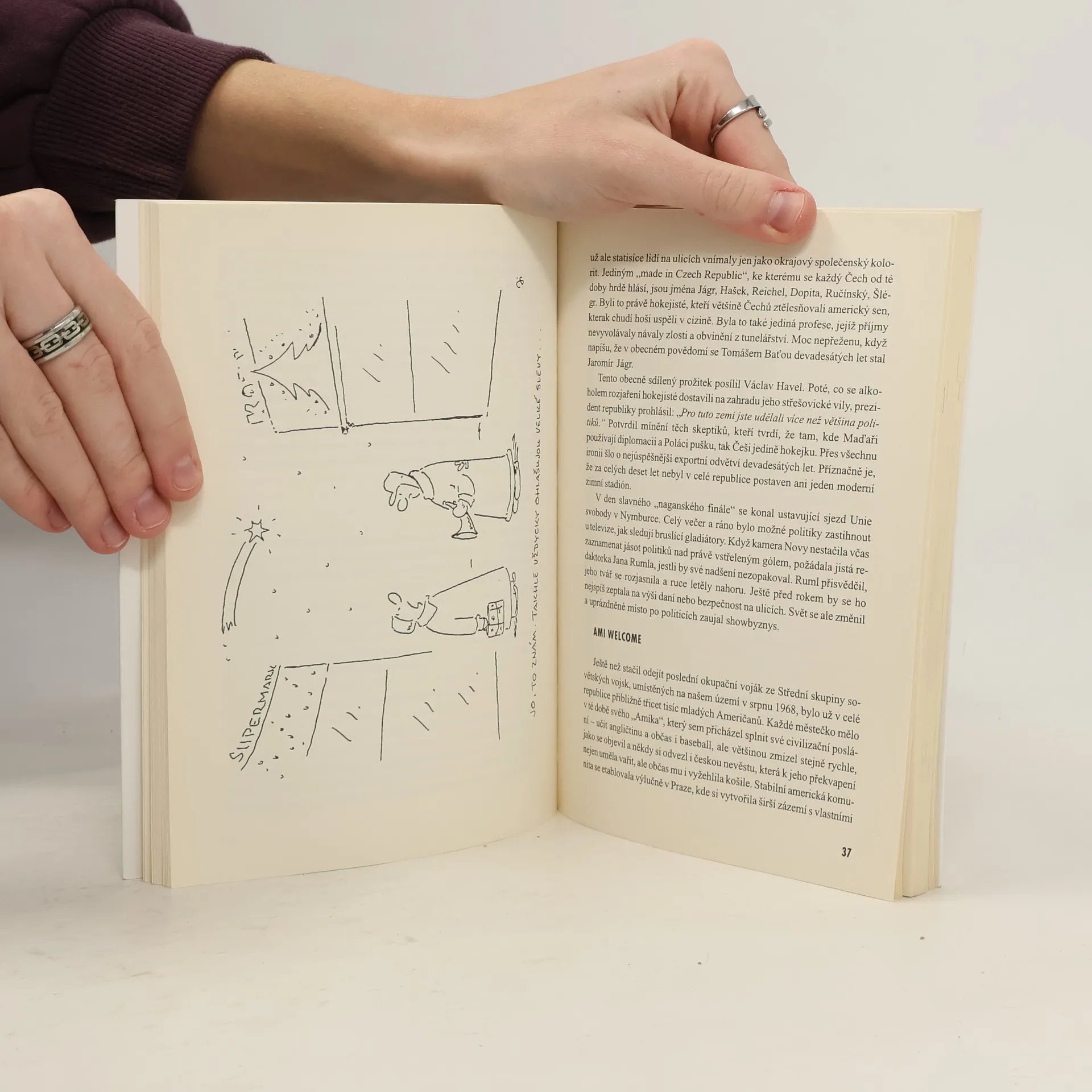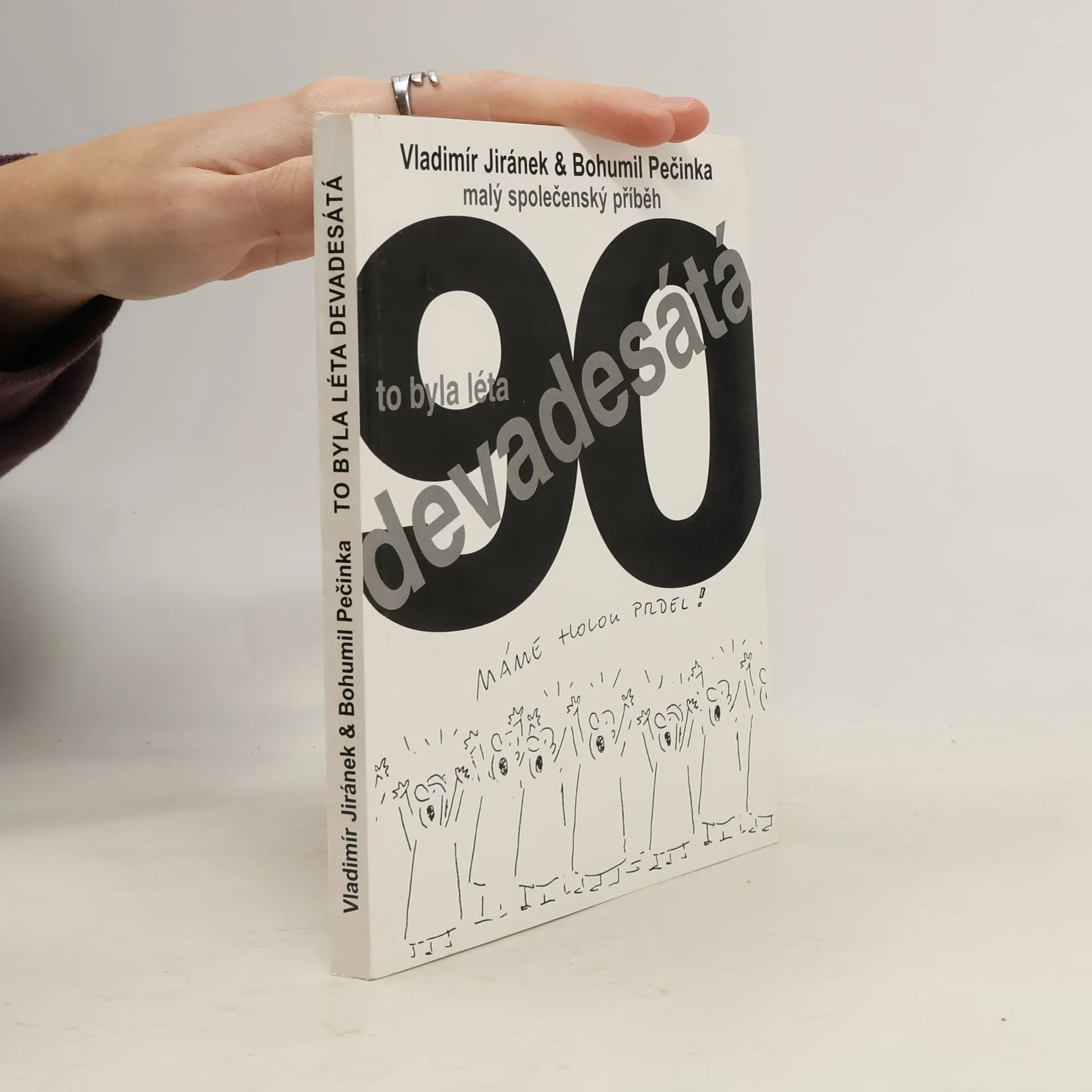 Jaký byl příběh české společnosti devadesátých let? V jakých kulisách se odehrával? A co se za nimi skrývalo? První část s názvem Zlatá devadesátá je esejistickým vyprávěním o životním stylu, spotřebních návycích, klíčových slovech a fenoménech uplynulého desetiletí - od zániku Tuzexu, přes odchod Rusů, příchod Američanů, vznik televize Nova až po tunelování a hypermarkety, mohl by být podtitul knihy. Republika v deseti obrazech, tak se jmenuje druhý esej, pojednávající o deseti zlomových okamžicích české politiky devadesátých let. Kdo vystřelil z české Aurory? Jaká byla úloha Mariána Čalfy? Proč Klaus porazil své konkurenty? Celým textem se pak proplétají vtipné obrázky Vladimíra Jiránka. V části Milí spoluobčané Bohumil Pečínka stopětapadesátkrát glosuje charakteristické momenty devadesátých let – seriál M.A.S.H., dobové reklamní popěvky, vznik a zánik mnoha firem a zapomenuté výroky politiků jsou zarámovány do stereotypu novoročních projevů Václava Havla, což celému textu dává zvláštní rytmus a vyznění. Závěrečné Putování s Vladimírem Jiránkem je trochu nevážným povídáním obou autorů o kreslených postavičkách, jako je bufefák, „Bogart" a Jíra z Maršová, a o tom, kdo z nich doplatil na sametovou revoluci.