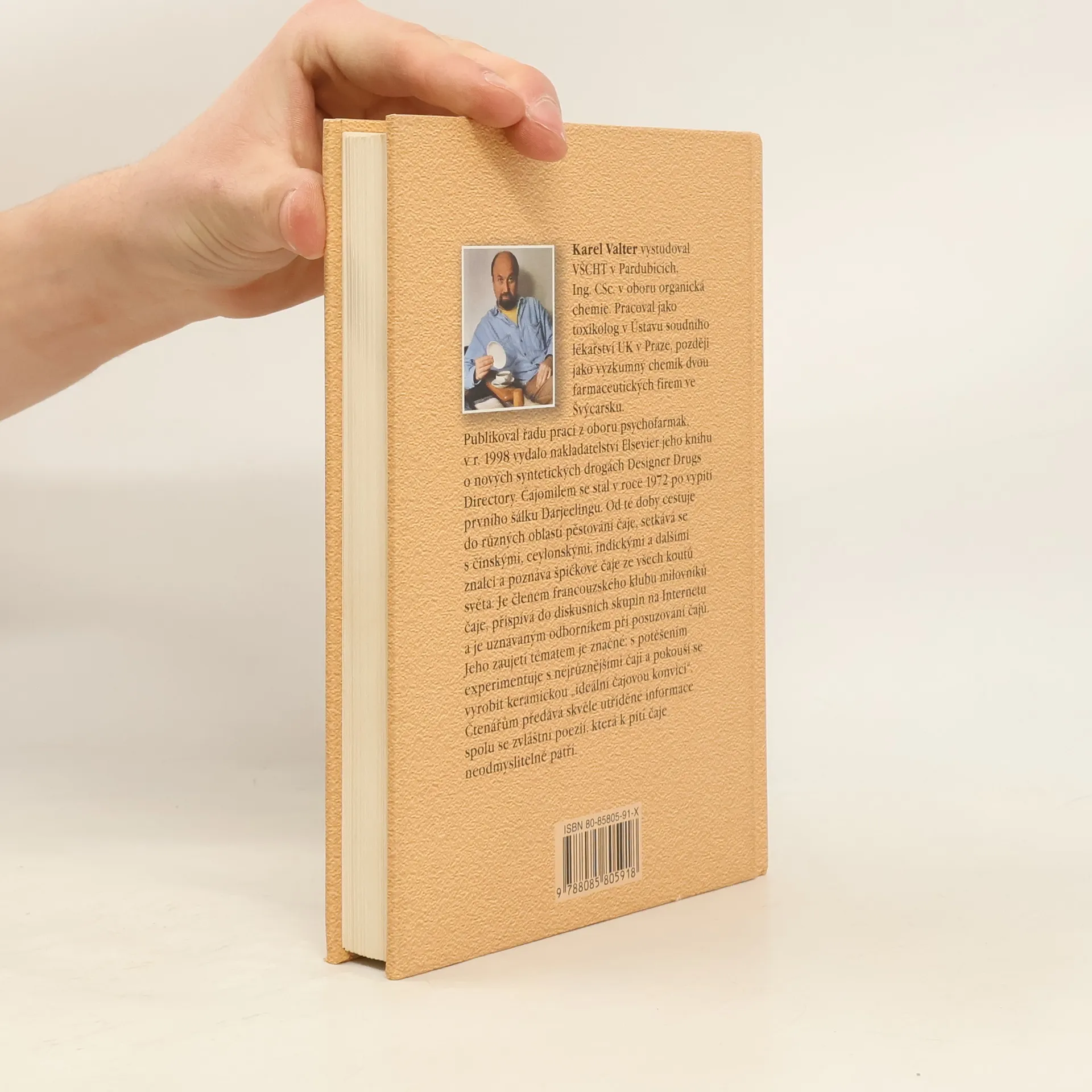Karel Valter vystudoval VŠCHT v Pardubicích, Ing. CSc. v oboru organická chemie. Pracoval jako toxikolog v Ústavu soudního lékařství UK v Praze, později jako výzkumný chemik dvou farmaceutických firem ve Švýcarsku. Publikoval řadu prací z oboru psychofarmak, v r. 1998 vydalo nakladatelství Elsevier jeho knihu o nových syntetických drogách Designer Drugs Directory. Čajomilem se stal v roce 1972 po vypití prvního šálku Darjeelingu. Od té doby cestuje do různých oblastí pěstování čaje, setkává se s čínskými, ceylonskými, indickými a dalšími znalci a poznává špičkové čaje ze všech koutů světa. Je členem francouzského klubu milovníků čaje, přispívá do diskusních skupin na Internetu a je uznávaným odborníkem při posuzování čajů. Jeho zaujetí tématem je značné: s potěšením experimentuje s nejrůznějšími čaji a pokouší se vyrobit keramickou „ideální čajovou konvici“. Čtenářům předává skvěle utříděné informace spolu se zvláštní poezií, která k pití čaje neodmyslitelně patří.