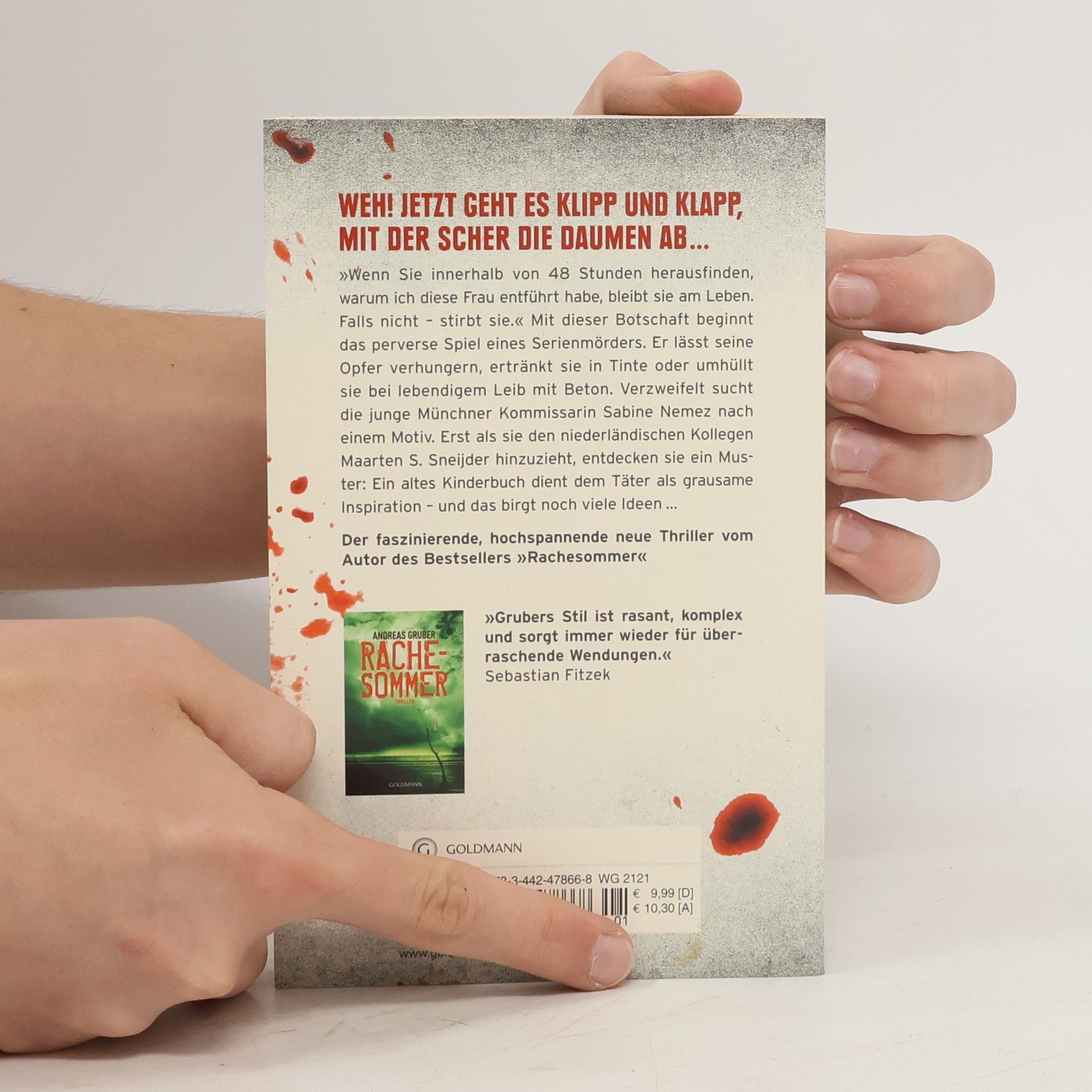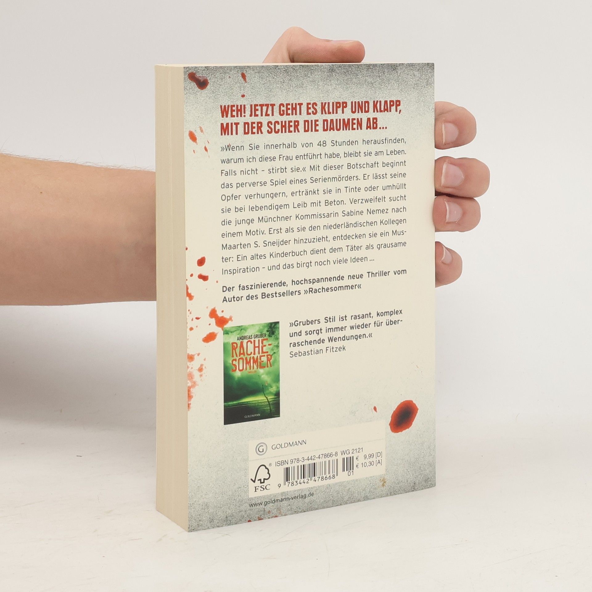 Ein Serienmörder treibt sein Unwesen – und ein altes Kinderbuch dient ihm als grausame Inspiration. »Wenn Sie innerhalb von 48 Stunden herausfinden, warum ich diese Frau entführt habe, bleibt sie am Leben. Falls nicht – stirbt sie.« Mit dieser Botschaft beginnt das perverse Spiel eines Serienmörders. Er lässt seine Opfer verhungern, ertränkt sie in Tinte oder umhüllt sie bei lebendigem Leib mit Beton. Verzweifelt sucht die Münchner Kommissarin Sabine Nemez nach einer Erklärung, einem Motiv. Erst als sie einen niederländischen Kollegen hinzuzieht, entdecken sie zumindest ein Muster: Ein altes Kinderbuch dient dem Täter als grausame Inspiration – und das birgt noch viele Ideen ... Der Auftakt zur Erfolgsserie um die Ermittler Sneijder und Nemez.