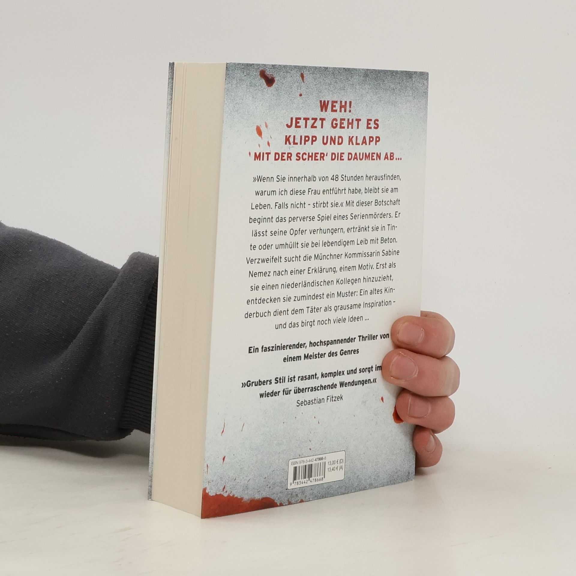 Ein Serienmörder treibt sein Unwesen – und ein altes Kinderbuch dient ihm als grausame Inspiration. »Wenn Sie innerhalb von 48 Stunden herausfinden, warum ich diese Frau entführt habe, bleibt sie am Leben. Falls nicht – stirbt sie.« Mit dieser Botschaft beginnt das perverse Spiel eines Serienmörders. Er lässt seine Opfer verhungern, ertränkt sie in Tinte oder umhüllt sie bei lebendigem Leib mit Beton. Verzweifelt sucht die Münchner Kommissarin Sabine Nemez nach einer Erklärung, einem Motiv. Erst als sie einen niederländischen Kollegen hinzuzieht, entdecken sie zumindest ein Muster: Ein altes Kinderbuch dient dem Täter als grausame Inspiration – und das birgt noch viele Ideen ... Der Auftakt zur Erfolgsserie um die Ermittler Sneijder und Nemez.