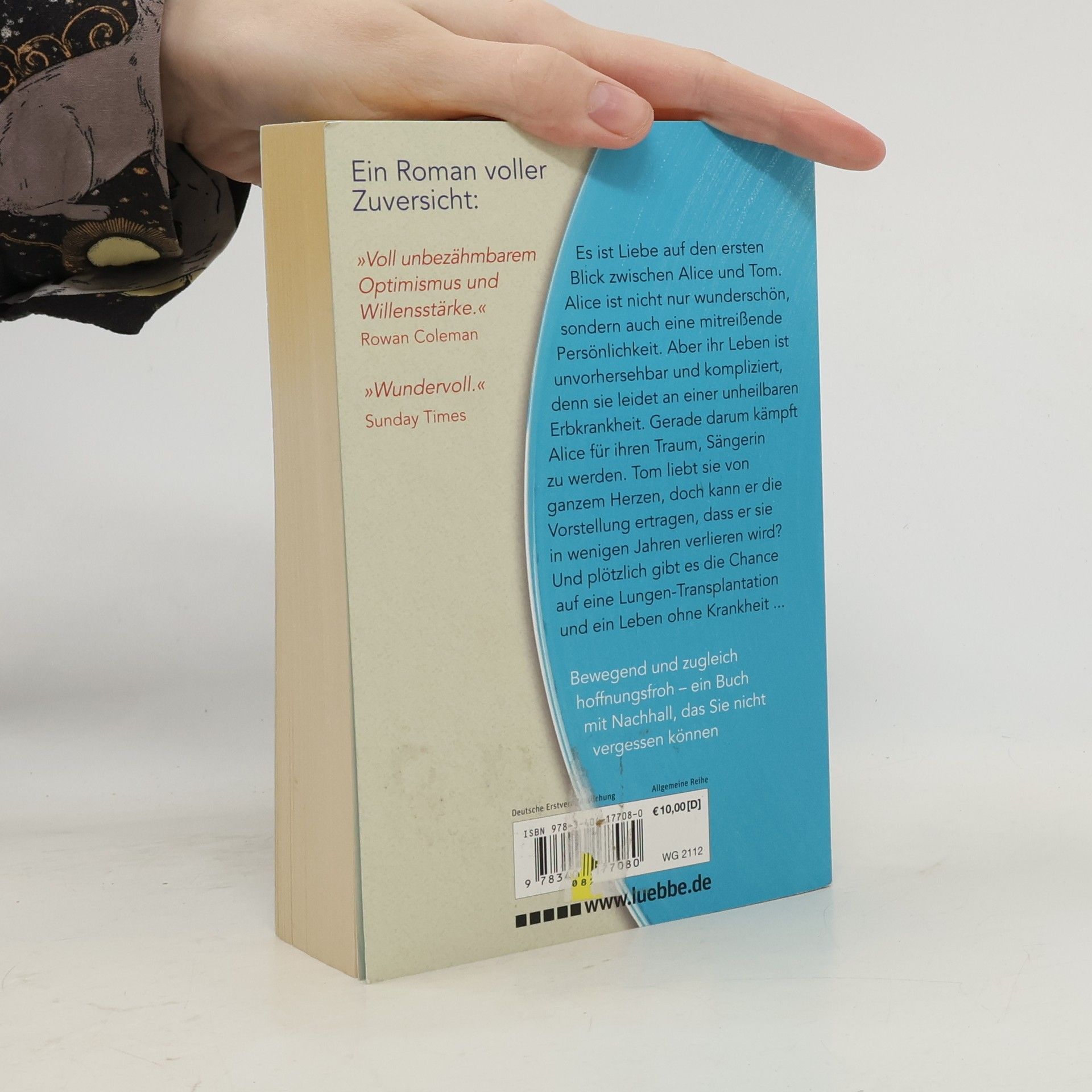 Es ist Liebe auf den ersten Blick zwischen Alice und Tom. Alice ist nicht nur wunderschön, sondern eine mitreißende Persönlichkeit. Aber ihr Leben ist unvorhersehbar und kompliziert, denn sie leidet unter einer unheilbaren Erbkrankheit. Gerade darum kämpft Alice für ihren Traum, Sängerin zu werden. Tom liebt sie von ganzem Herzen, doch kann er die Vorstellung ertragen, dass er sie in wenigen Jahren verlieren wird? Und plötzlich gibt es die Chance auf eine Lungen-Transplantation und ein Leben ohne Krankheit ...