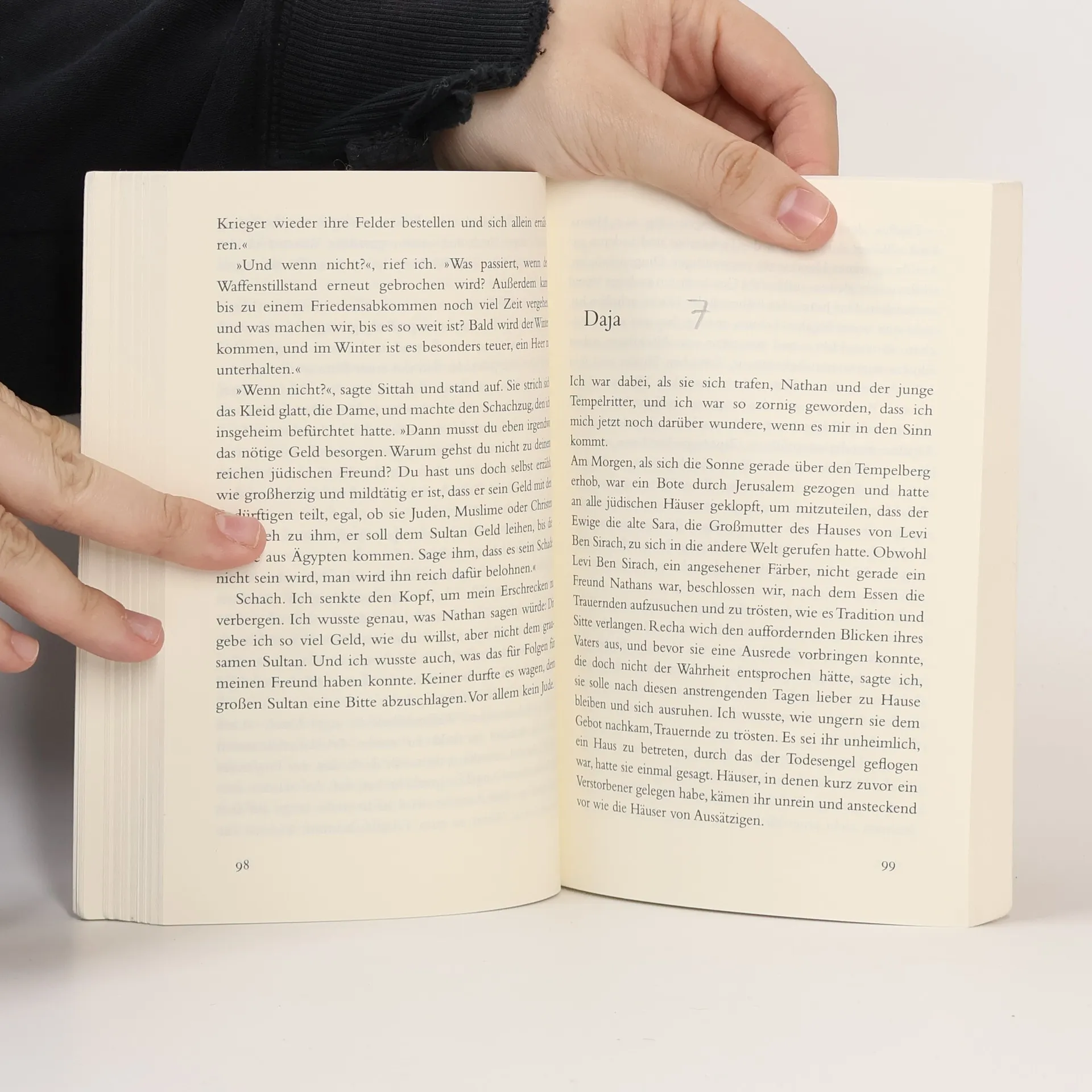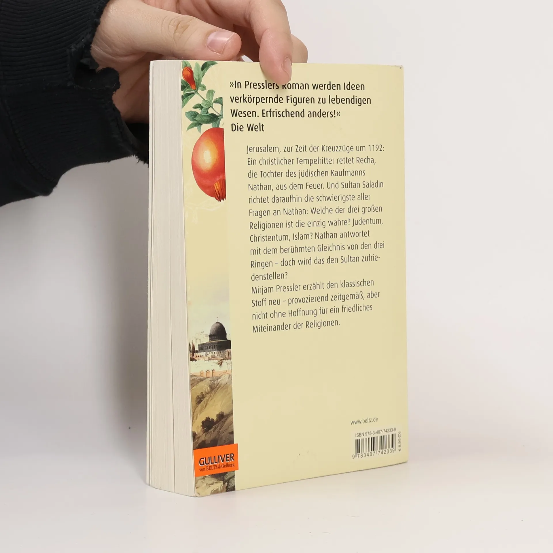 »Ein hochaktuelles, spannendes Buch über Toleranz und die Koexistenz der drei Religionen, die ja bis heute nicht gelingt.« Frankfurter Rundschau Jerusalem, zur Zeit der Kreuzzüge um 1192: Ein junger Tempelritter rettet Recha, die Tochter des jüdischen Kaufmanns Nathan, aus dem Feuer. Daraufhin richtet Sultan Saladin die schwierigste aller Fragen an Nathan: Welche Religion ist die einzig wahre? Nathan antwortet mit dem berühmten Gleichnis von den drei Ringen – doch wird das den Sultan zufriedenstellen? Außerdem ahnt Nathan nicht, dass ihm inzwischen der christliche Patriarch von Jerusalem und ein moslemischer Hauptmann nach dem Leben trachten ... Mirjam Pressler erzählt den klassischen Stoff neu – provozierend zeitgemäß, aber nicht ohne Hoffnung für ein friedliches Nebeneinander der Religionen.