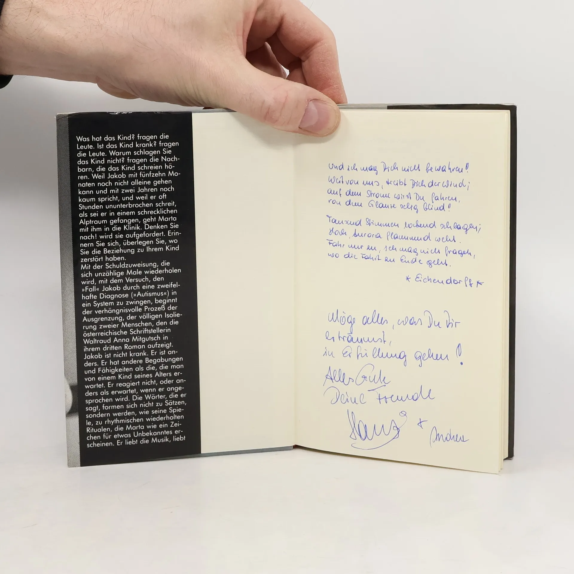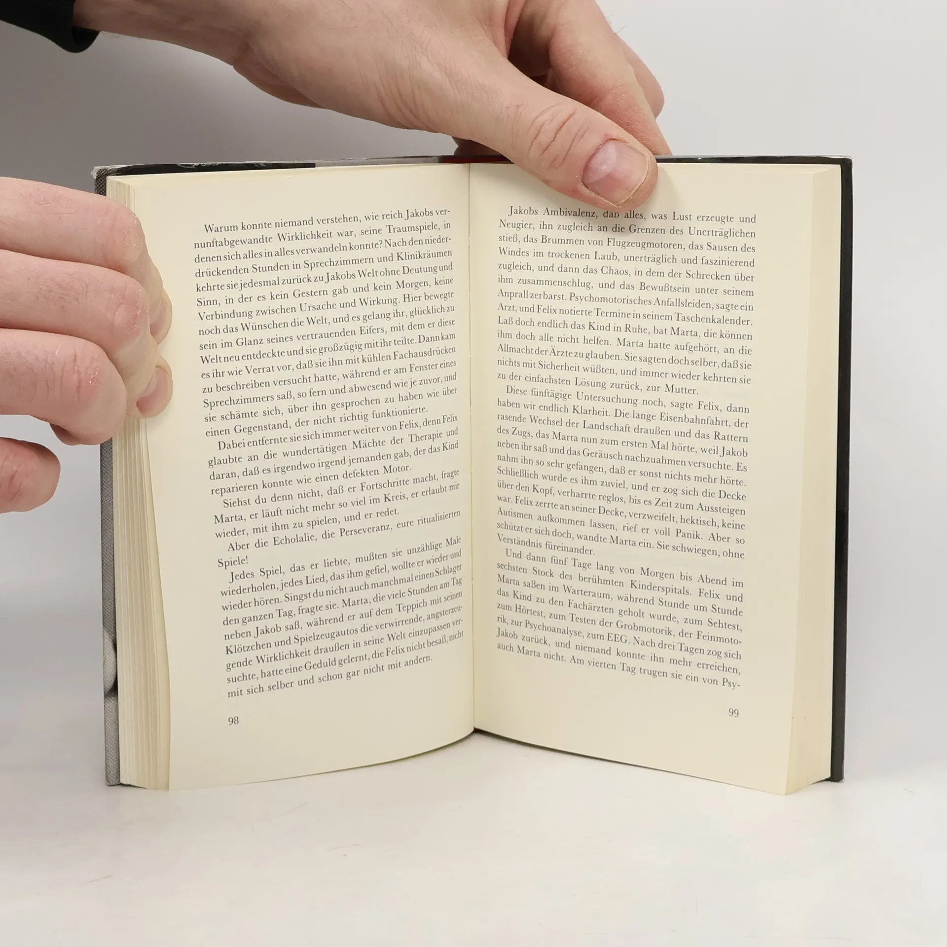Die Nachbarn fragen besorgt, ob das Kind krank sei, während Marta mit ihrem Sohn Jakob, der mit fünfzehn Monaten nicht allein gehen kann und mit zwei Jahren kaum spricht, in die Klinik geht. Jakob schreit oft stundenlang, und die Schuldzuweisungen an Marta beginnen. Sie wird aufgefordert, über ihre Beziehung zu Jakob nachzudenken, während sein „Fall“ in ein System gepresst werden soll, das ihn als autistisch klassifiziert. Doch Jakob ist nicht krank, sondern anders. Er hat andere Begabungen und reagiert unerwartet auf seine Umwelt. Seine Worte bilden keine Sätze, sondern werden zu rhythmischen Ritualen. Marta versucht, in Jakobs Welt einzutauchen, um ihn besser zu verstehen, und richtet ihr Leben ganz nach ihm aus. Sie erklärt den Fachleuten, dass ihr Kind ein „Grenzfall“ ist, doch die Kluft zu den anderen bleibt bestehen. Marta fühlt sich zunehmend isoliert, als würde eine unsichtbare Mauer um sie wachsen. Mit beklemmender Eindringlichkeit beschreibt die Autorin, wie Marta und Jakob an den Rand der Gesellschaft gedrängt werden, während sie versuchen, sich in einer Welt zurechtzufinden, die ihre Andersartigkeit nicht akzeptiert.
