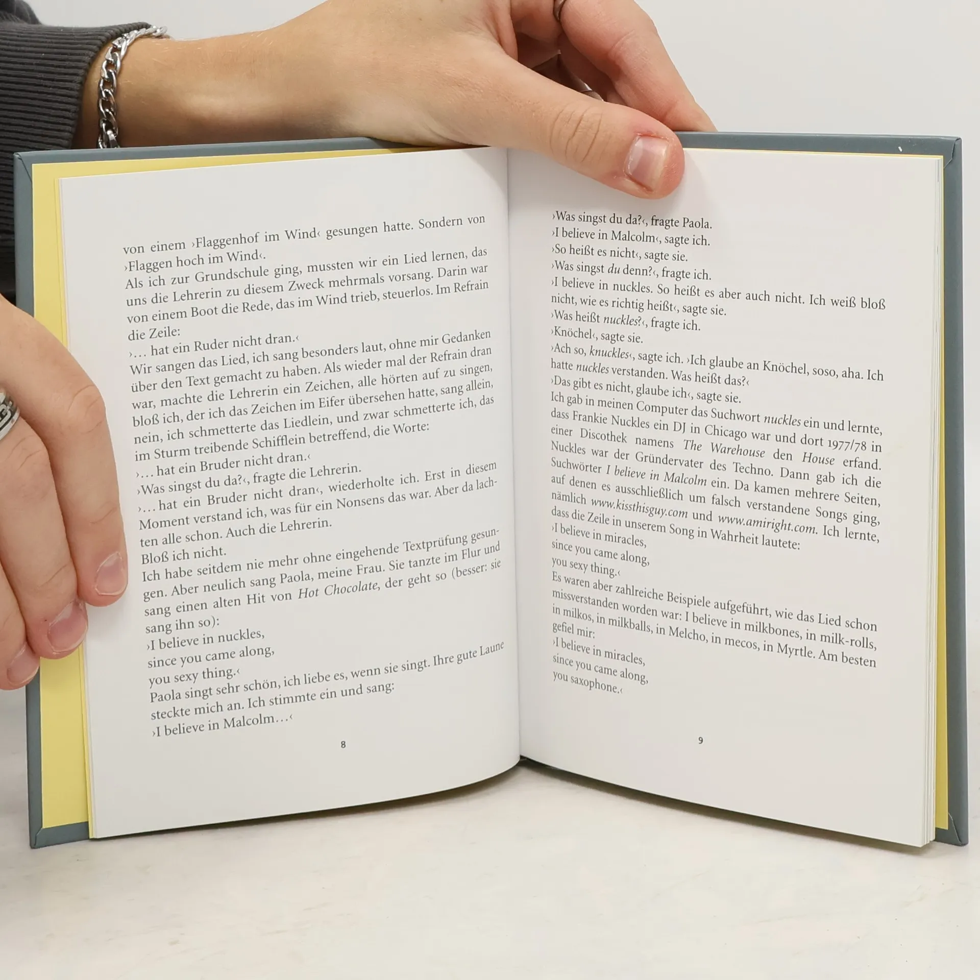 "Seit ich das erste Mal darüber schrieb, wie sehr Menschen Liedtexte falsch verstehen - wie etwa in eines Lesers Ohren Matthias Claudius' Zeile ›der weiße Nebel wunderbar‹ zu ›der weiße Neger Wumbaba‹ wurde und so eine unvergessliche, radikal poetische Traumgestalt entstand, deren Schöpfung Claudius selbst wohl nicht möglich war - erreichte mich eine solche Flut von Leserbriefen, gefüllt mit Beispielen für falsch verstandene Liedtexte, dass ich nun der Meinung bin: Im Grunde versteht kaum ein Mensch je einen Liedtext richtig, ja Liedtexte sind überhaupt nur dazu da, falsch verstanden zu werden. Aufgabe eines Liedtexters ist es, den Menschen Material zu liefern, damit ihre Phantasie wirken kann …"
