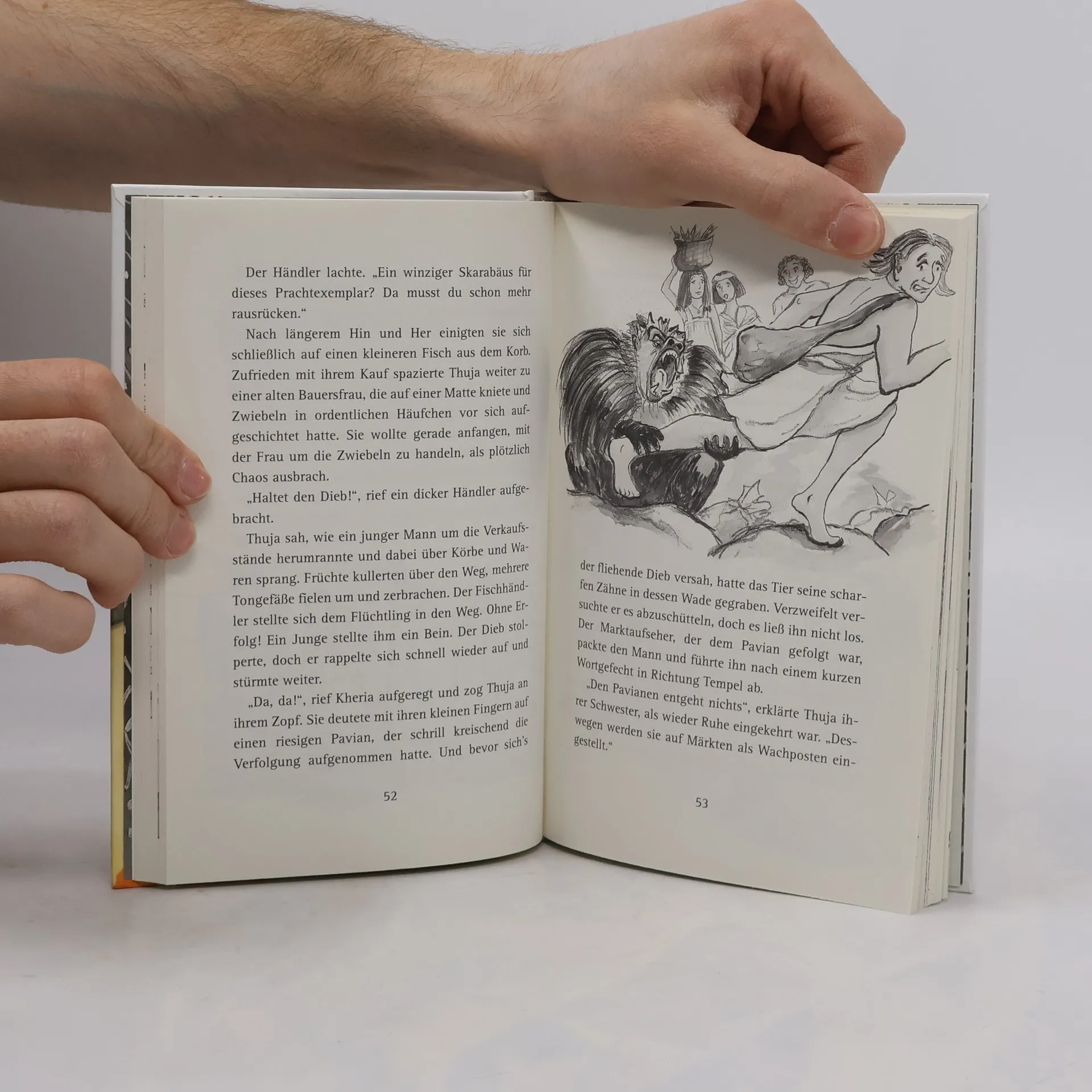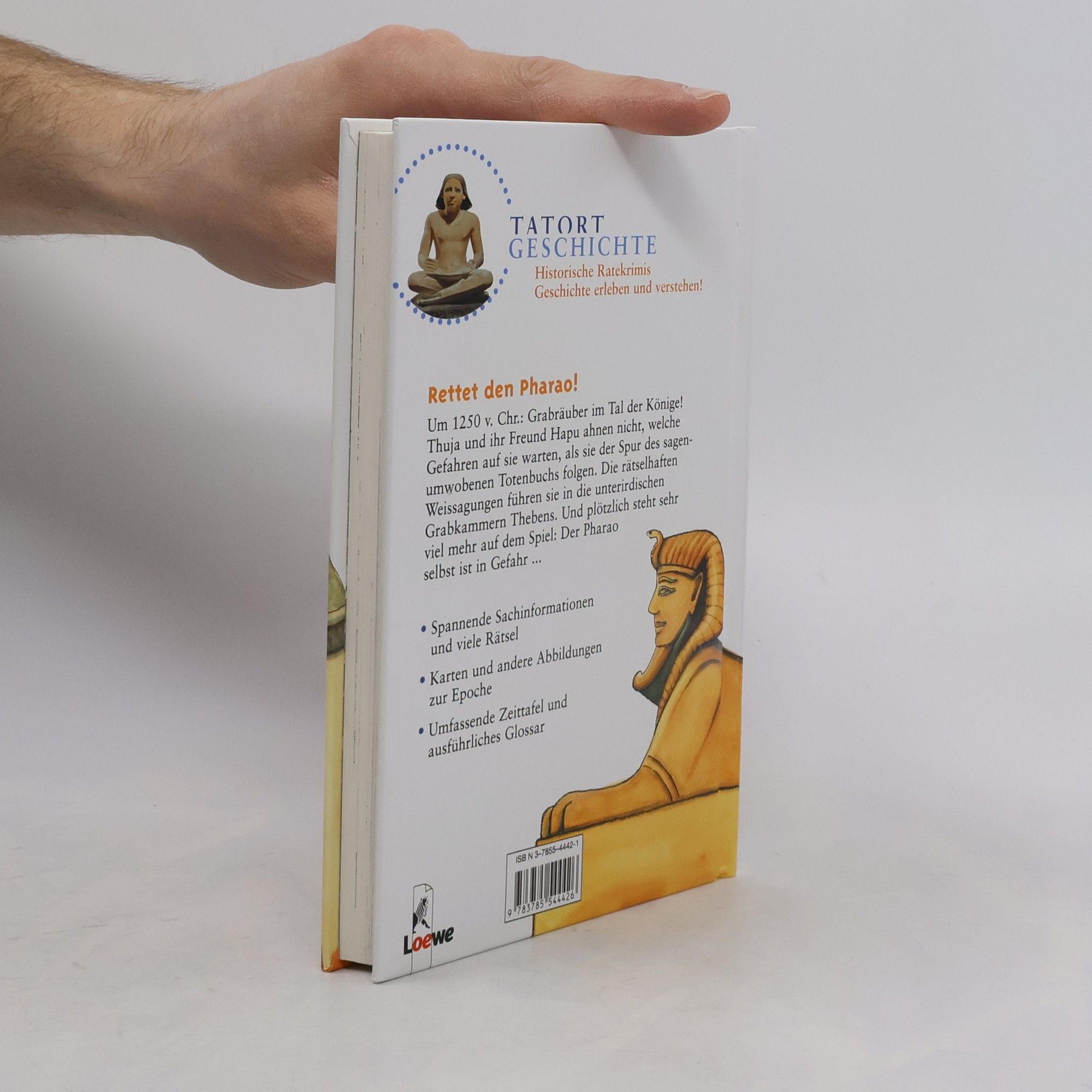 Um 1250 v. Chr.: Grabräuber im Tal der Könige! Thuja und ihr Freund Hapu ahnen nicht, welche Gefahren auf sie warten, als sie der Spur des sagenumwobenen Totenbuchs folgen. Die rätselhaften Weissagungen führen sie in die unterirdischen Grabkammern Thebens. Und plötzlich steht sehr viel mehr auf dem Spiel: Der Pharao selbst ist in Gefahr ... Spannende Sachinformationen und viele Rätsel Karten und andere Abbildungen zur Epoche Umfassende Zeittafel und ausführliches Glossar
