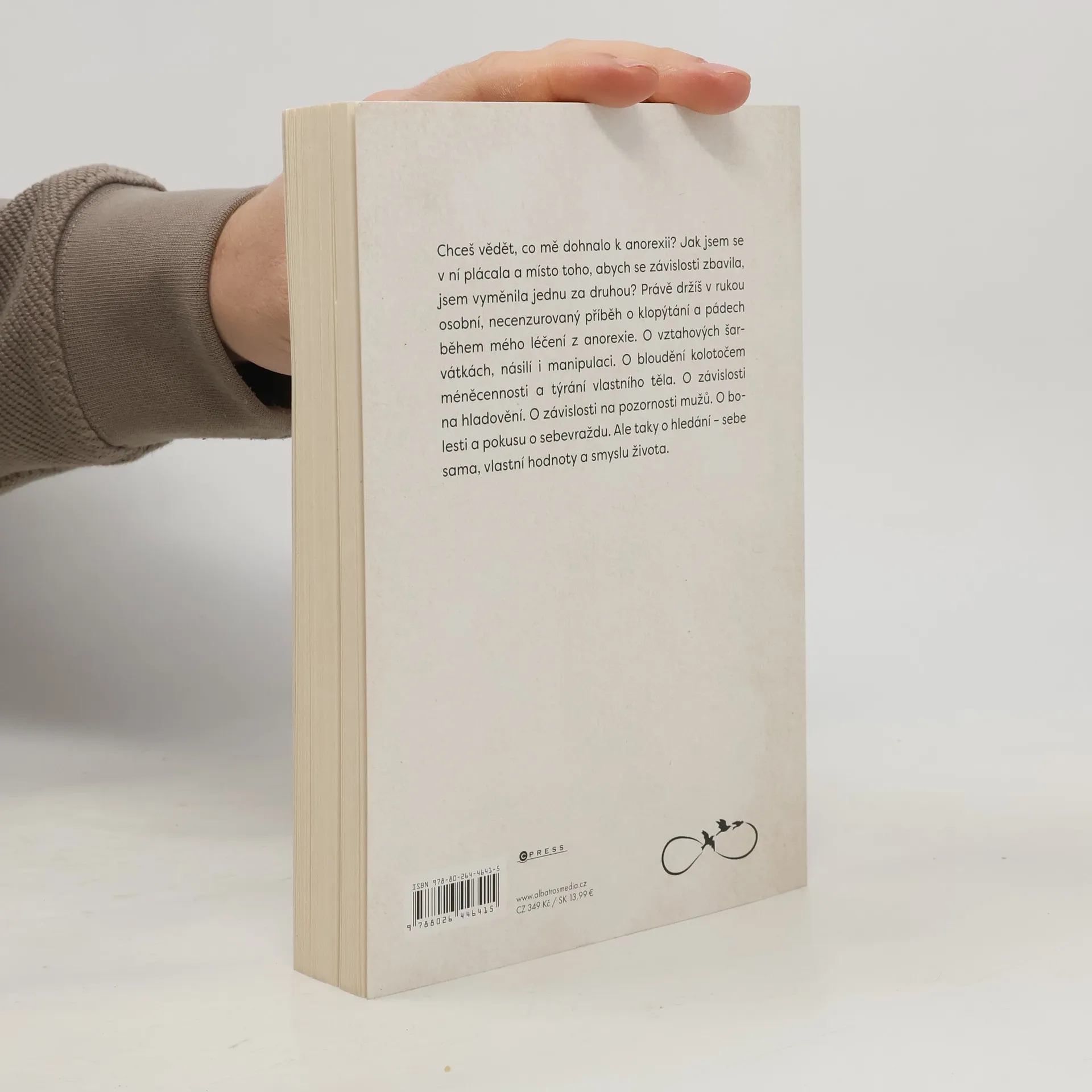 Příběh plný bolesti, nenávisti k vlastnímu tělu, ale i naděje a touhy po životě. Chceš vědět, co mě dohnalo k anorexii? Jak jsem se v ní plácala a místo toho, abych se závislosti zbavila, jsem vyměnila jednu za druhou? Právě držíš v rukou osobní, necenzurovaný příběh o klopýtání a pádech během mého léčení z anorexie. O vztahových šarvátkách, násilí i manipulaci. O bloudění kolotočem méněcennosti a týrání vlastního těla. O závislosti na hladovění. O závislosti na pozornosti mužů. O bolesti a pokusu o sebevraždu. Ale taky o hledání - sebe sama, vlastní hodnoty a smyslu života.
