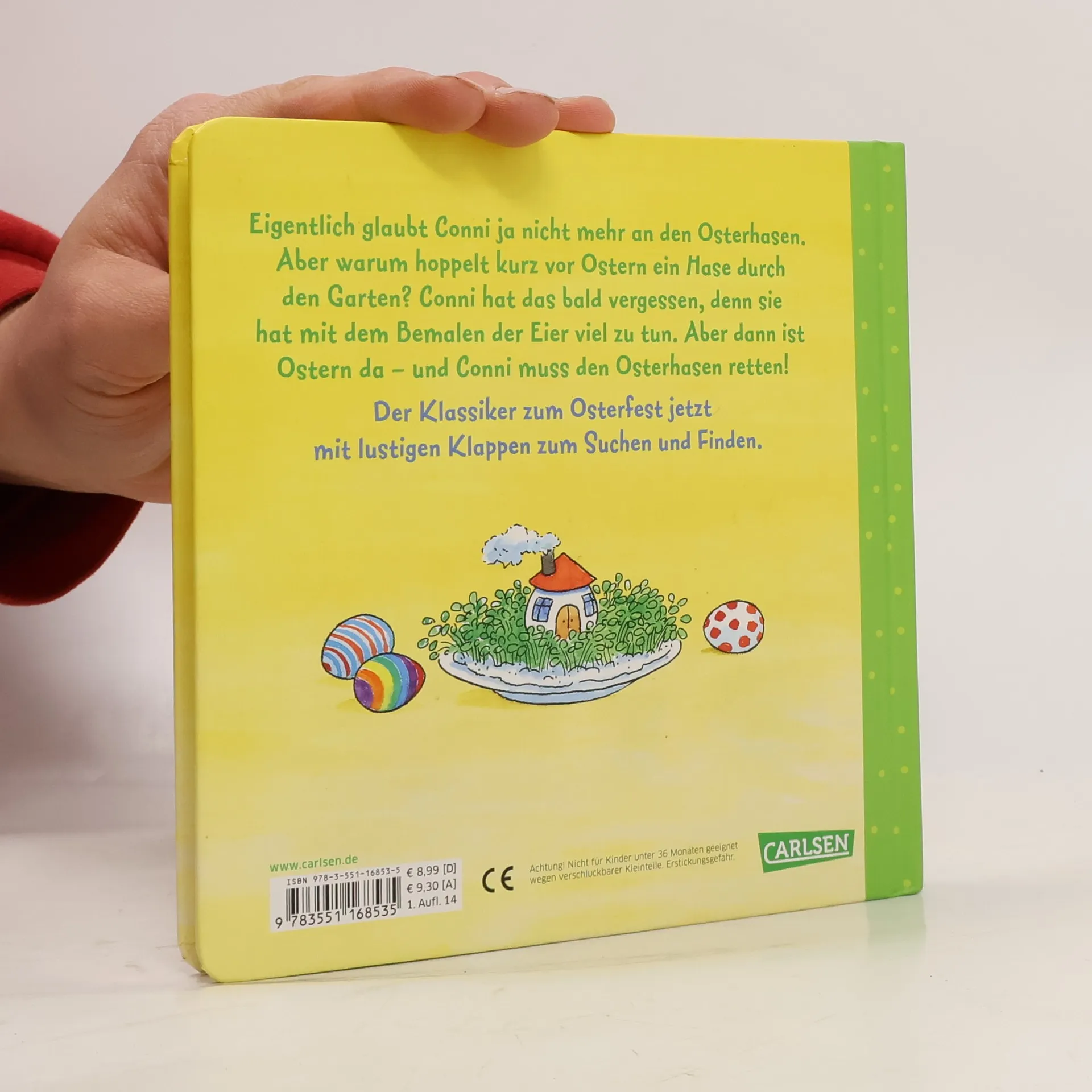 Eigentlich glaubt Conni ja nicht mehr an den Osterhasen. Aber warum hoppelt kurz vor Ostern ein Hase durch den Garten? Conni hat das bald vergessen, denn sie hat mit dem Bemalen der Eier viel zu tun. Doch dann ist Ostern da - und Conni muss den Osterhasen retten! Der Klassiker zum Osterfest jetzt mit stabilen Pappseiten und lustigen Klappen zum Suchen und Finden.