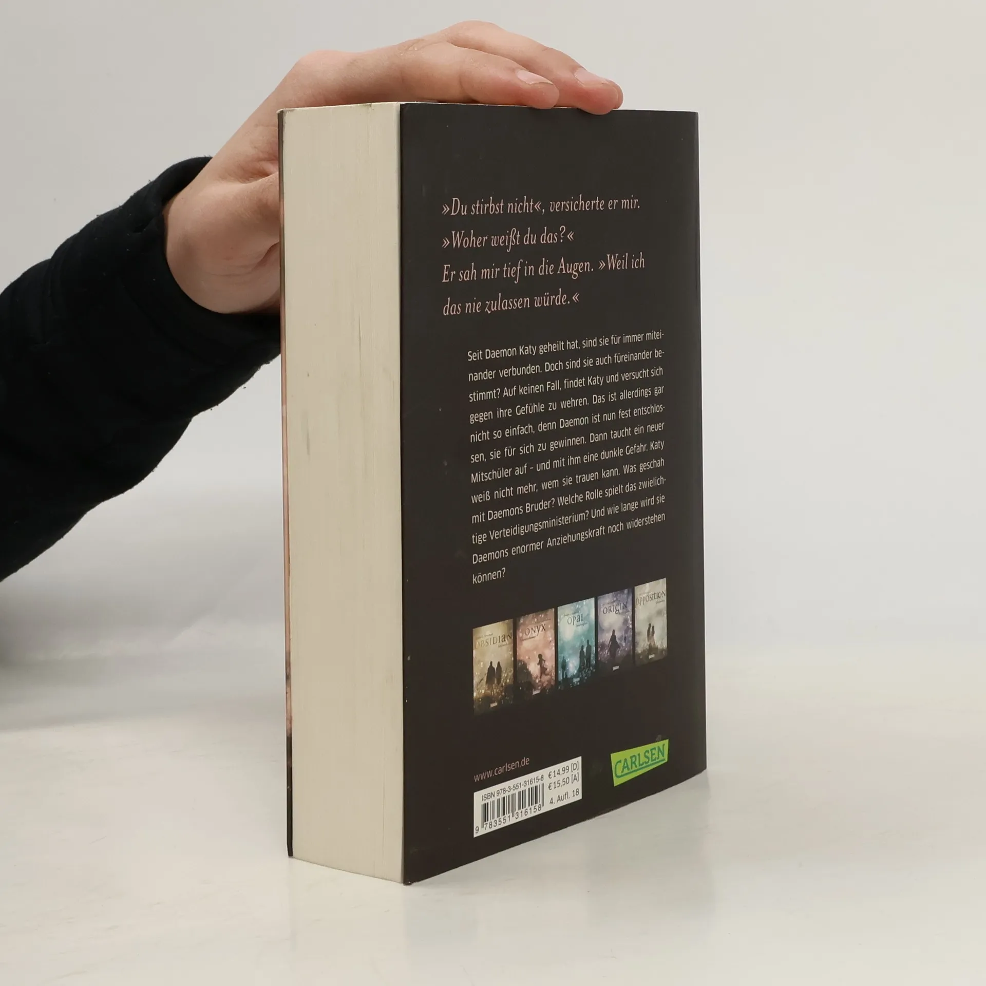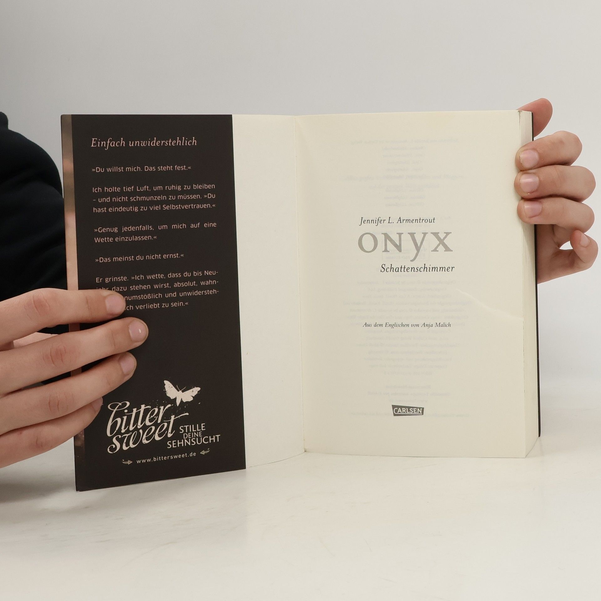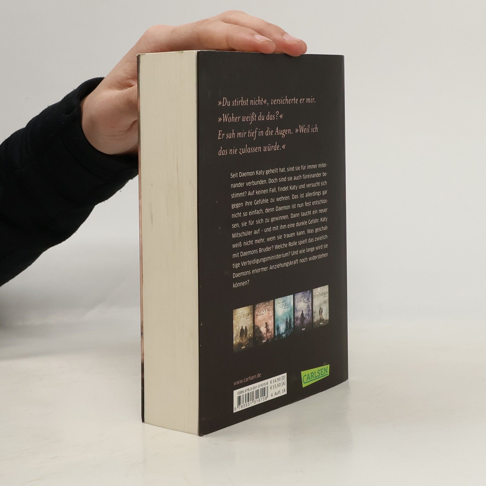 Seit Daemon Katy geheilt hat, sind sie für immer miteinander verbunden. Doch heißt das, dass sie auch füreinander bestimmt sind? Auf keinen Fall, findet Katy und versucht sich gegen ihre Gefühle zu wehren. Das ist allerdings gar nicht so einfach, denn Daemon ist nun fest entschlossen, sie für sich zu gewinnen. Dann taucht ein neuer Mitschüler auf – und mit ihm eine dunkle Gefahr. Katy weiß nicht mehr, wem sie trauen kann. Was geschah mit Daemons Bruder? Welche Rolle spielt das zwielichtige Verteidigungsministerium? Und wie lange wird sie Daemons enormer Anziehungskraft noch widerstehen können? Dies ist der zweite Band der Obsidian-Serie von Jennifer L. Armentrout. Alle Bände der unwiderstehlichen Bestsellerserie:Obsidian. SchattendunkelOnyx. SchattenschimmerOpal. SchattenglanzOrigin. SchattenfunkeOpposition. Schattenblitz Alle Bände der dazugehörigen Oblivion-Serie:Oblivion 1: Lichtflüstern (Obsidian aus Daemons Sicht erzählt)Oblivion 2: Lichtflimmern (Onyx aus Daemons Sicht erzählt)Oblivion 3: Lichtflackern (Opal aus Daemons Sicht erzählt) Alle bisher erschienenen Bände der Spin-off-Serie »Revenge«:Revenge. SternensturmRebellion. SchattensturmRedemption. Nachtsturm
