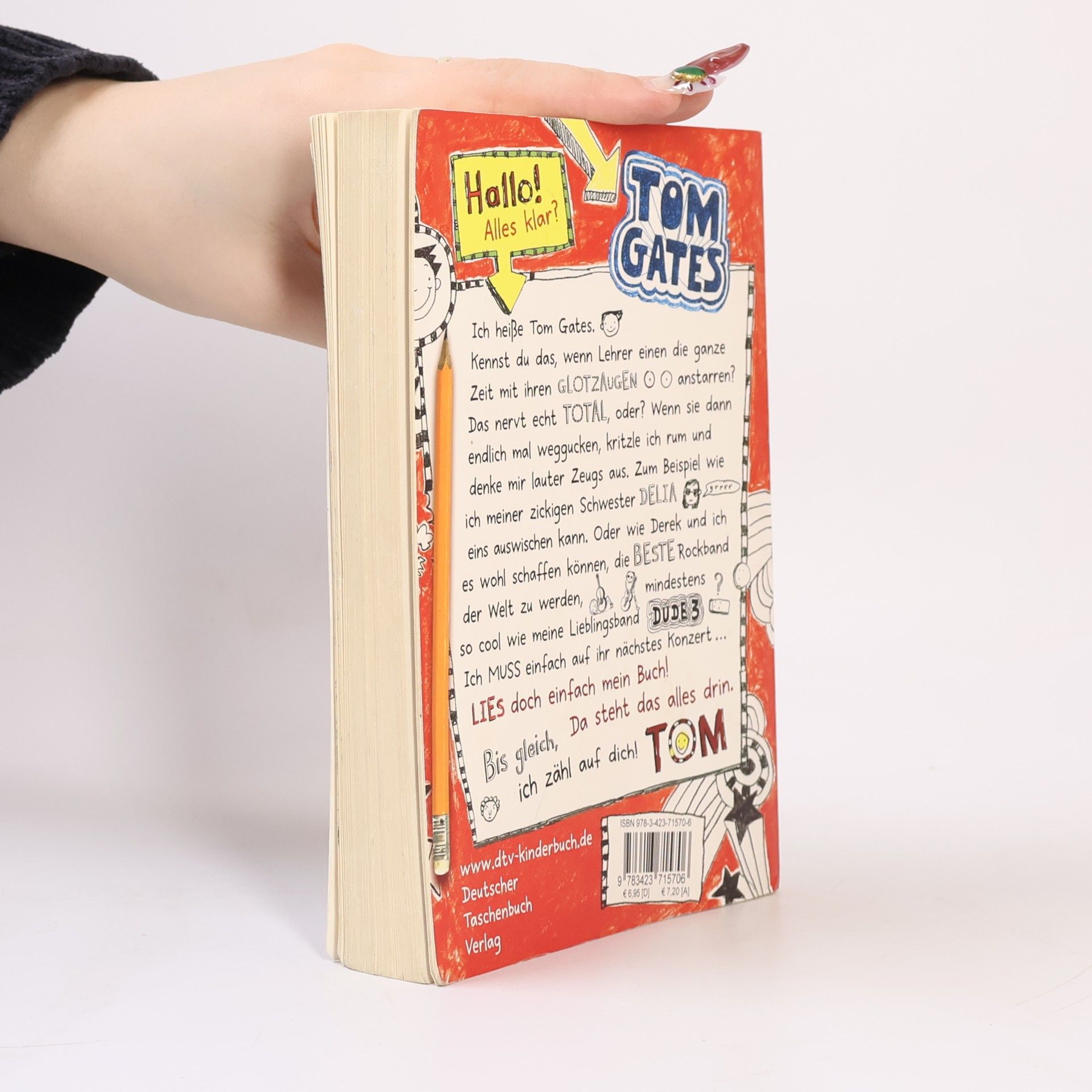 Das Chaos hat einen neuen Namen: Tom Gates Tom Gates hat schon vor der Schule viel zu tun: seiner zickigen Schwester eins auswischen, Süßigkeiten auftreiben oder schnell noch Gitarre spielen. Aber wenn er dann im Unterricht erst einmal sein Heft aufgeschlagen hat, legt er so richtig los: Keine Seite, kein noch so kleiner Zettel ist vor seinen coolen und witzigen Kritzeleien, niemand vor seinen verrückten Ideen sicher. Zum Glück nimmt ihm das keiner wirklich übel, weil Tom nie böse Absichten hat. Manchmal laufen die Dinge einfach nur anders als geplant.
