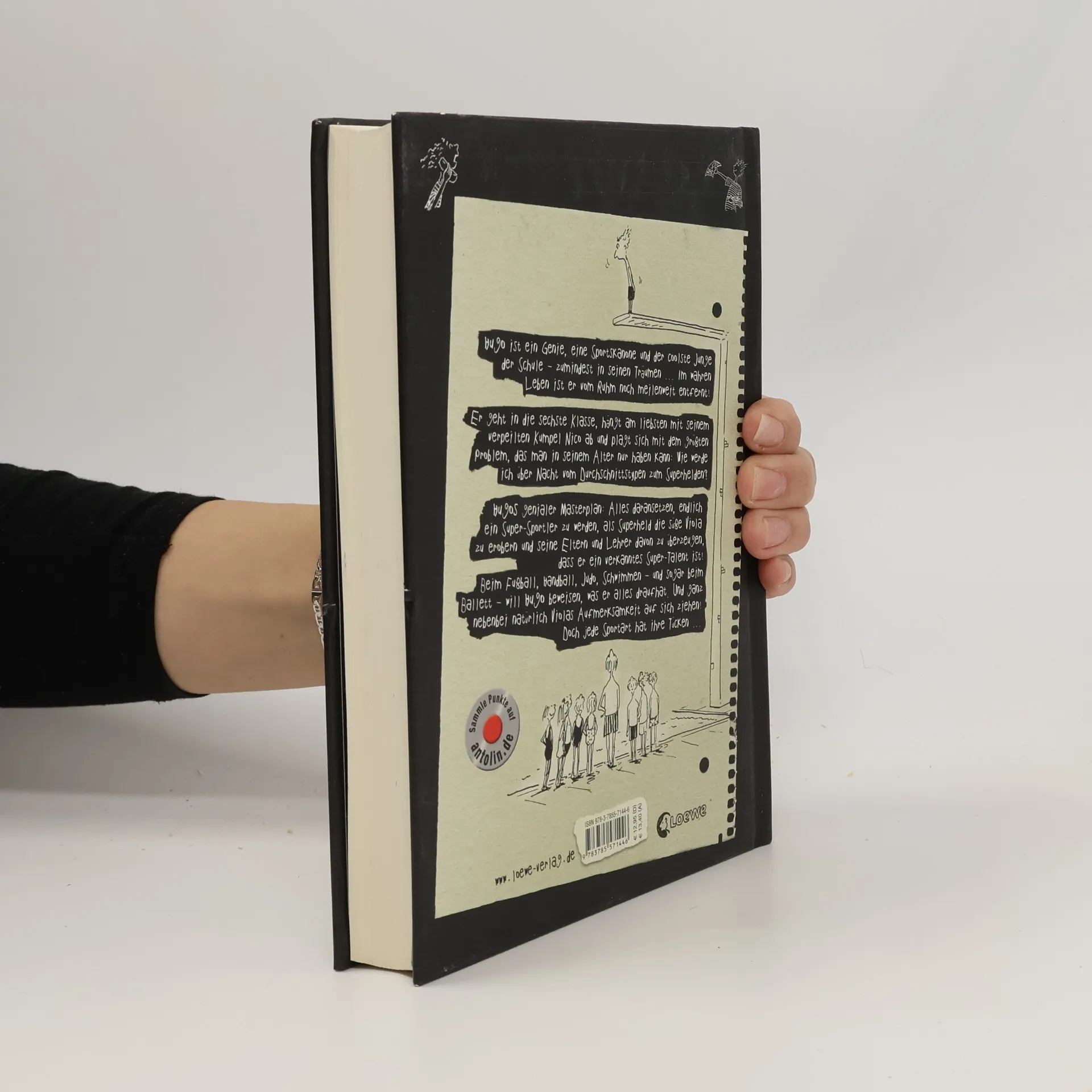 Hugo ist ein Genie, eine Sportskanone und der coolste Junge der Schule – zumindest in seinen Träumen … Im wahren Leben ist er vom Ruhm noch meilenweit entfernt! Er geht in die sechste Klasse, hängt am liebsten mit seinem verpeilten Kumpel Nico ab und plagt sich mit dem größten Problem, das man in seinem Alter nur haben kann: Wie werde ich über Nacht vom Durchschnittstypen zum Superhelden? Hugos genialer Masterplan: Alles daransetzen, endlich ein Super-Sportler zu werden, als Superheld die süße Viola zu erobern und seine Eltern und Lehrer davon zu überzeugen, dass er ein verkanntes Super-Talent ist! Beim Fußball, Handball, Judo, Schwimmen – und sogar beim Ballett – will Hugo beweisen , was er alles draufhat. Und ganz nebenbei natürlich Violas Aufmerksamkeit auf sich ziehen! Doch jede Sportart hat ihre Tücken … Das erste Buch rund um Hugo und seine genialen Ideen: lustig, cool und mit Potential zum Lieblingsbuch.