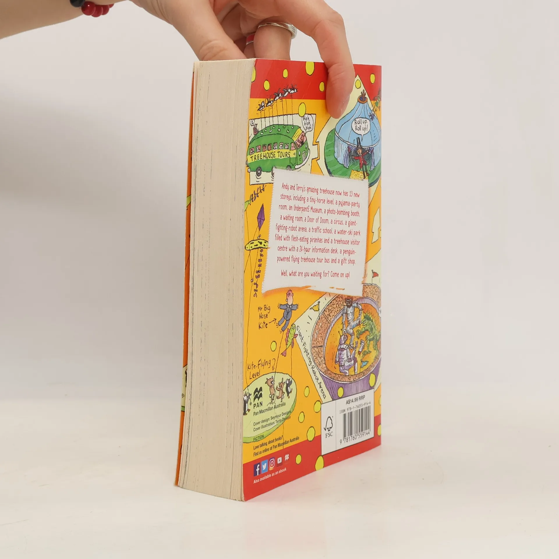 Andy and Terry's treehouse now has 13 new storeys, including a tiny-horse level, a pyjama-party room, an Underpants Museum, a photo-bombing booth, a waiting room, a Door of Doom, a circus, a giant-robot-fighting arena, a traffic school, a water-ski park filled with flesh-eating piranhas and a treehouse visitor centre with a 24-hour information desk, a penguin-powered flying treehouse tour bus and a gift shop. Well, what are you waiting for? Come on up!