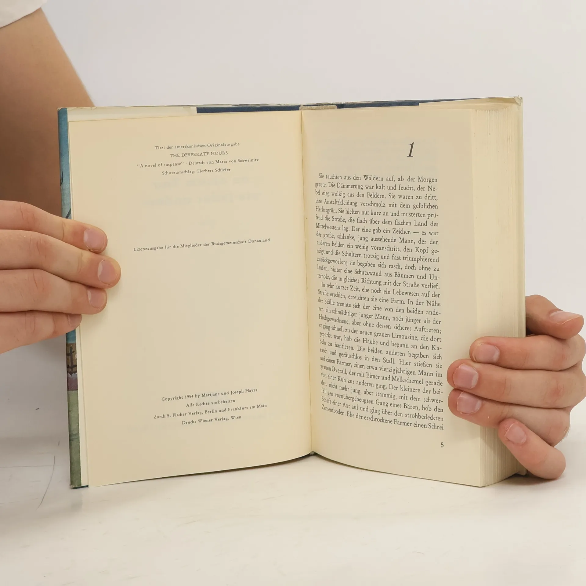An einem Tag wie jeder andere wird die Familie Hilliard plötzlich, mitten in ihrem bürgerlichen normalen Leben, vor Entscheidungen von tödlichem Ernst gestellt. Drei entsprungene Sträflinge dringen in die friedliche Villa, um sich dort vor ihren Verfolgern zu verbergen, und zwingen Vater, Mutter, Tochter und den kleinen Sohn, ihr Leben so weiterzuführen, als sei nichts geschehen. Zwar geht es äußerlich weiter wie an jedem anderen Tag, doch hat sich die Welt für die Betroffenen in grausamer Weise verändert ... Dieses Geiseldrama – erfolgreich verfilmt mit Humphrey Bogart – gehört zu den aufregendsten Büchern des Thriller-Spezialisten Joseph Hayes.