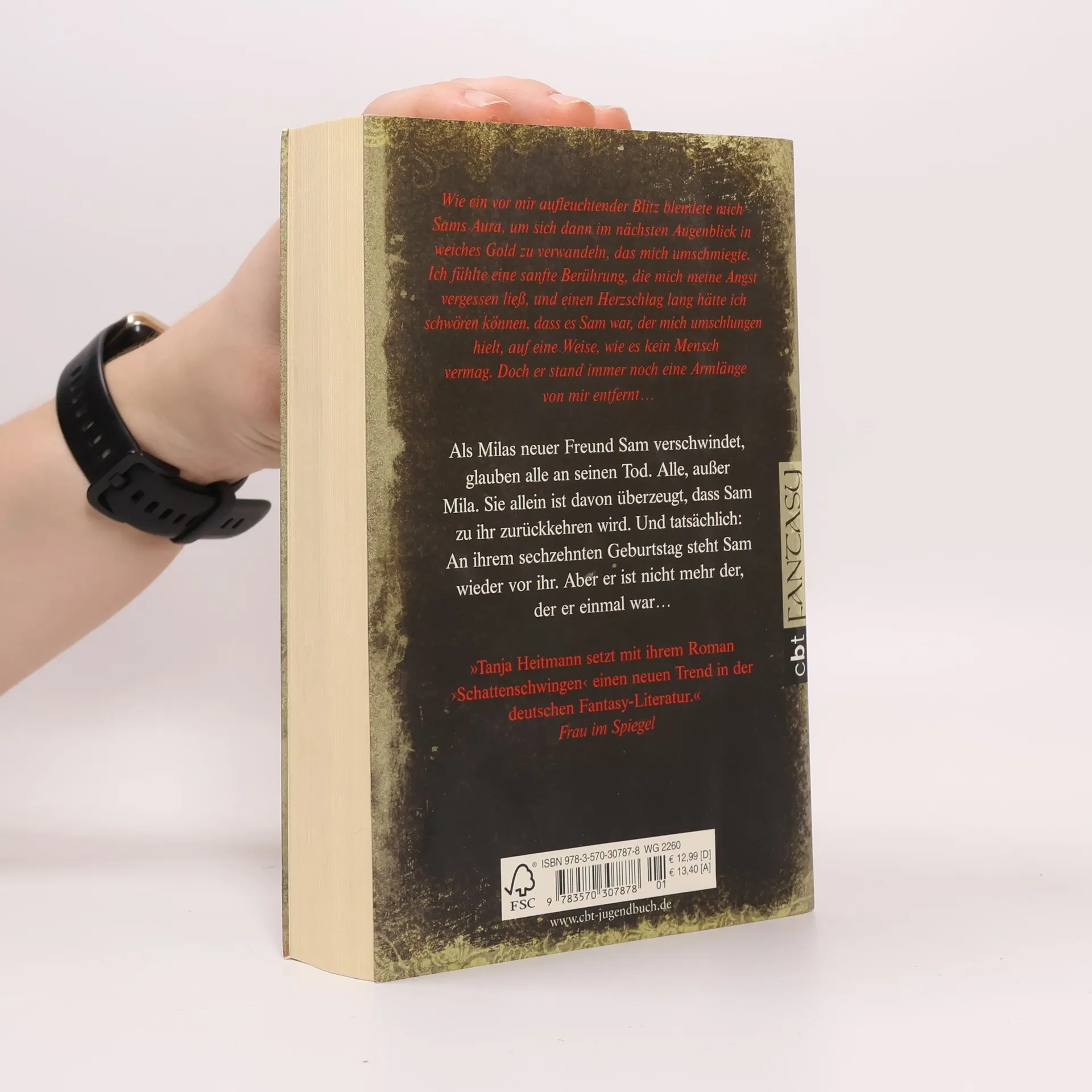 Seit langem ist Mila von Sam, dem besten Freund ihres Bruders Rufus, fasziniert, doch mit fünfzehn kommt noch eine ganz andere Art der Verzauberung hinzu: Mila verliebt sich in Sam. Und er scheint ihre Gefühle zu erwidern. Doch gerade als sich die beiden näherkommen, passiert etwas Schreckliches. Sam verschwindet und Rufus, der in jener Nacht mit seinem Freund zusammengewesen war, kann sich nur schemenhaft erinnern. Ist Sam von der Klippe gestürzt? Während alle von Sams Tod überzeugt sind, glaubt Mila, dass er noch lebt. Und tatsächlich: An ihrem Geburtstag steht er wieder vor ihr – doch er ist nicht mehr der, der er einmal war. Sam ist eine Schattenschwinge geworden, ein engelsgleiches Wesen – und nur aus Liebe zu Mila ist er in die Welt der Menschen zurückgekehrt.