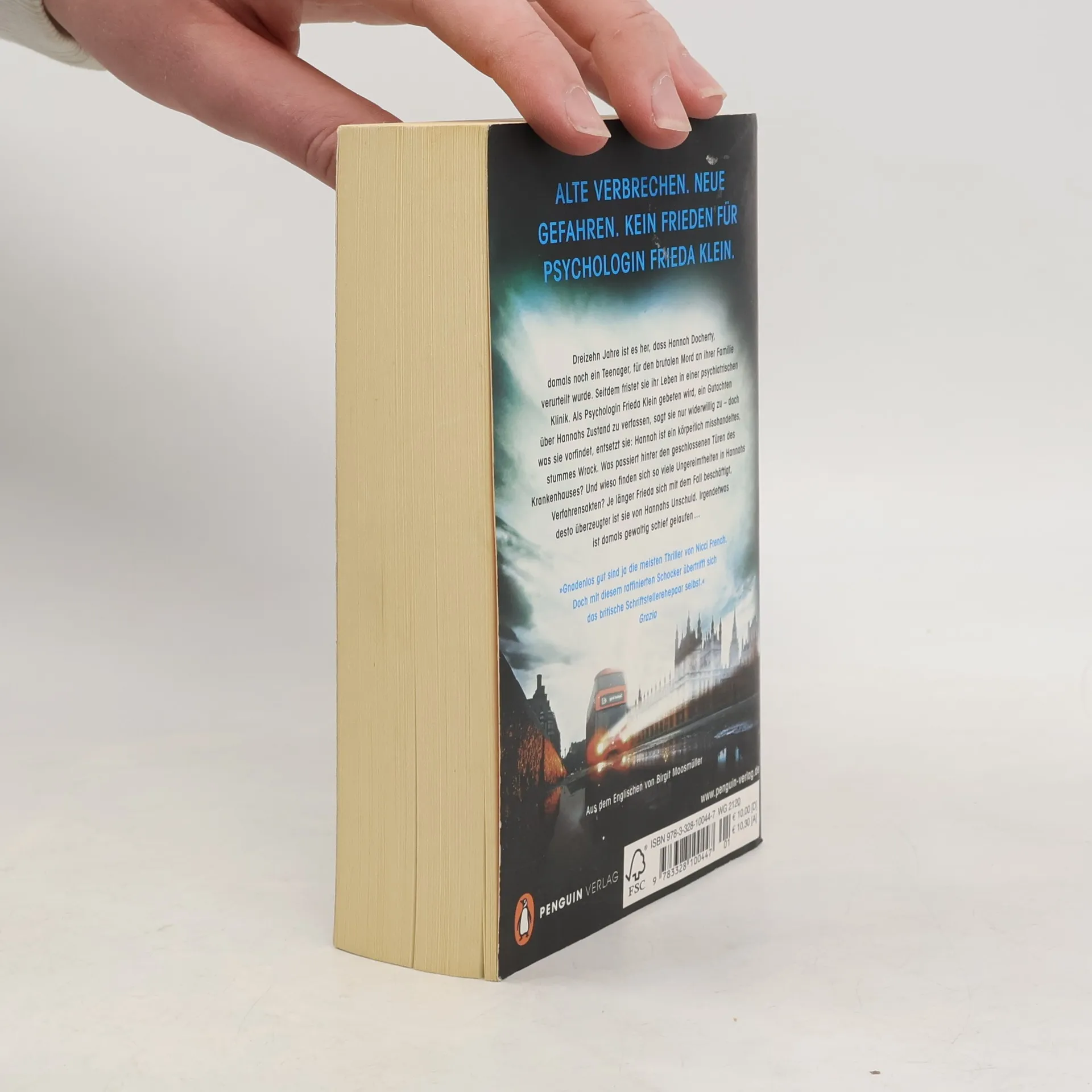 Frieda Klein kann nach den Aufregungen der Vergangenheit endlich aufatmen, glaubt sie, und sich Patienten, Freunden und Hobbys zuwenden. Doch schon bald holt eine offene Schuld sie ein – und wider Willen wird sie in den Fall Hannah Docherty verwickelt. Die über Dreißigjährige soll im Mai 2001 ihre Familie ermordet haben. Seitdem fristet sie ihr Leben, Medikamenten und Misshandlungen ausgesetzt, in einer psychiatrischen Klinik. Schon bald ist Frieda von Hannahs Unschuld überzeugt und setzt alles daran, den Fall neu aufzurollen ... Doch sie hat noch andere Sorgen – Dean Reeve, ihr Feind und Beschützer, ist anscheinend wieder aufgetaucht. Ein packender Thriller um die langen Schatten der Vergangenheit.