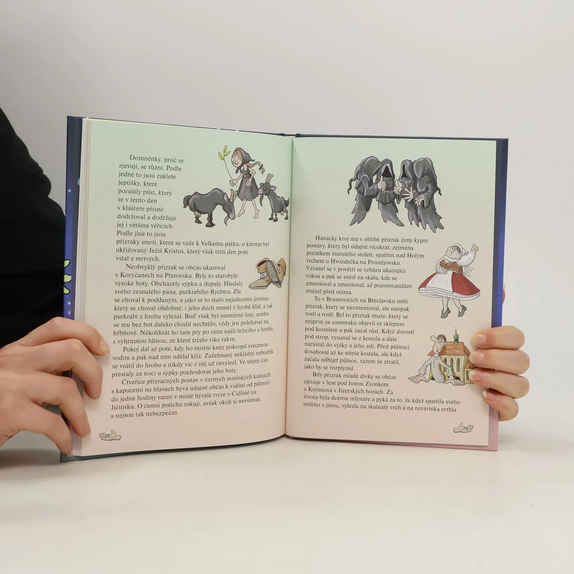 Vypravěč Ignác, jeden ze smutných přízraků, zavede všechny děti, které mají rády strašidelné příběhy, mezi nemilosrdné pány a jiné hříšníky. Jejich duše totiž nenalezly po smrti zasloužený klid, a tak musí tito lidé jako přízraky dodnes obcházet místa, kde za svého pozemského života pobývali nebo kde spáchali zlý skutek. Některé hříšníky provázejí čerti, mnohdy v podobách černých kocourů, koní i jiných zvířat. Autor uvádí také pověsti o lidech, kteří žili spořádaně, ale jejich duše natolik přilnula k místům, kde pobývali, že v přízračné podobě tato místa nadále chrání. Další díl oblíbené série pohádkových příběhů, které vycházejí z lidových pověstí. Všechna místa, kde se čtenáři mohou s přízraky setkat, najdou v ilustrované mapce České republiky, kterou stejně jako ostatní ilustrace v knize krásně ztvárnila Zdeňka Študlarová.