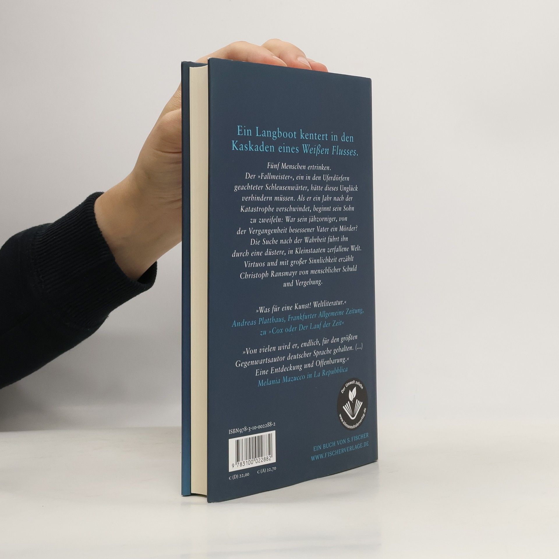 Nach den Bestsellern »Atlas eines ängstlichen Mannes« und »Cox oder Der Lauf der Zeit« erzählt Christoph Ransmayr in seinem Roman »Der Fallmeister« virtuos und mit großer Sinnlichkeit von menschlicher Schuld und Vergebung. Im tosenden Wildwasser stürzt ein Langboot die gefürchteten Kaskaden des Weißen Flusses hinab. Fünf Menschen ertrinken. Der »Der Fallmeister« , ein in den Uferdörfern geachteter Schleusenwärter, hätte dieses Unglück verhindern müssen. Als er ein Jahr nach der Katastrophe verschwindet, beginnt sein Sohn zu zweifeln: War sein jähzorniger, von der Vergangenheit besessener Vater ein Mörder? Die Suche nach der Wahrheit führt den Sohn des Fallmeisters tief zurück in die eigene Vergangenheit: Getrieben von seiner Leidenschaft für die eigene Schwester und der Empörung über das Schicksal seiner aus dem Land gejagten Mutter, folgt er den Spuren seines Vaters. Sein Weg führt ihn durch eine düstere, in Kleinstaaten zerfallene Welt. Größenwahnsinnige Herrscher ziehen immer engere Grenzen und führen Kämpfe um die Ressourcen des Trinkwassers. Bildmächtig und mit großer Intensität erzählt Christoph Ransmayr von einer bedrohten Welt und der menschlichen Hoffnung auf Vergebung.