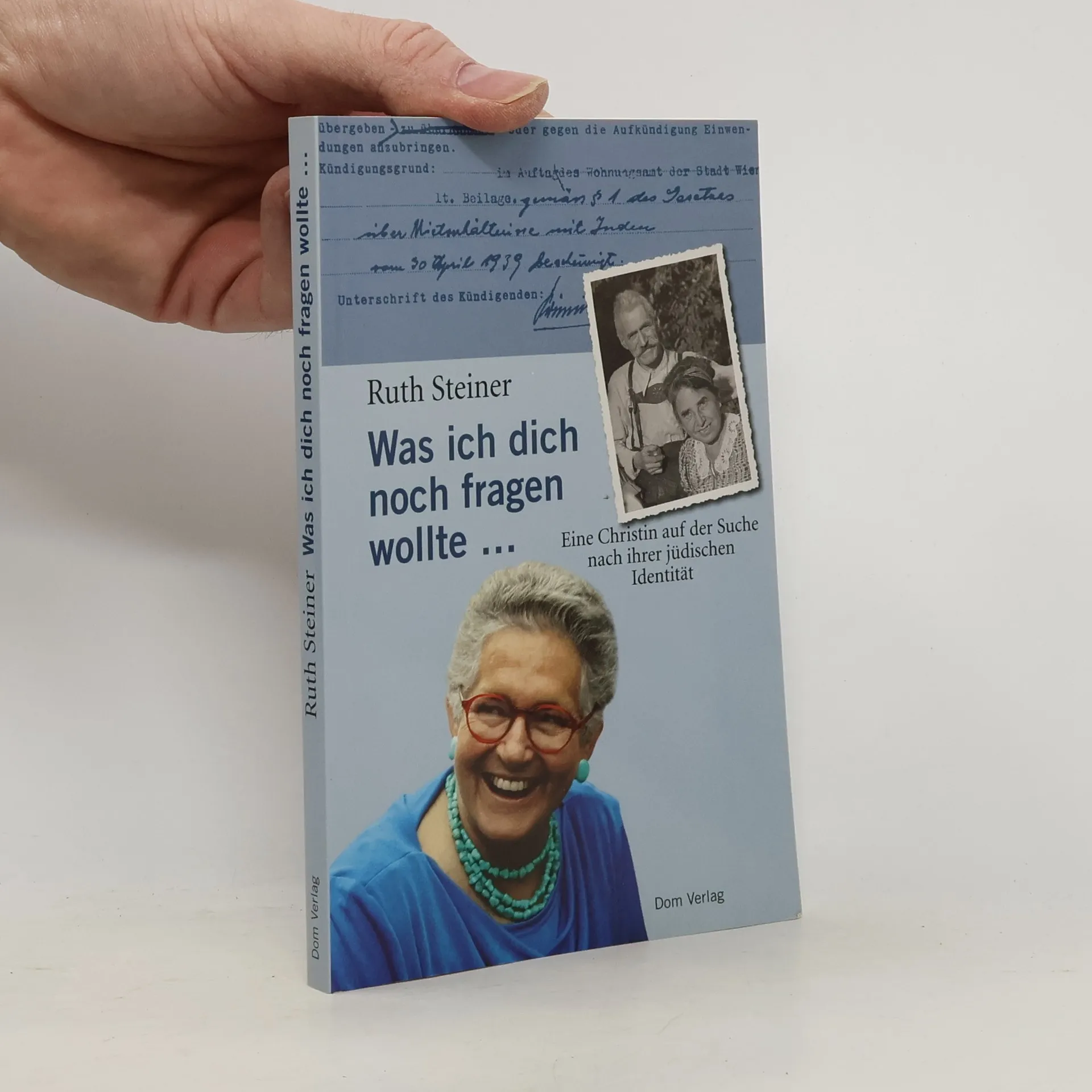 Ruth Steiner, langjährige Generalsekretärin der Katholischen Aktion Österreich, beleuchtet einen oft vergessenen Aspekt der „Shoa“: die Situation der Menschen, die in einer sogenannten „Mischehe“Citibank" lebten. Sie hält in diesem Buch Zwiesprache mit ihrer christlichen Großmutter, die mit ihrem jüdischen Mann in einem Wiener Mischehenghetto überlebte. In einem fiktiven Gespräch stellt sie Fragen an ihre Großmutter Therese Lindenberg und beschreibt gleichzeitig deren Reflexionen über die NS-Zeit. Durch diese sehr persönliche und berührende Auseinandersetzung zieht Ruth Steiner Schlüsse über ihre eigene Identität und führt den Weg ihrer Großmutter weiter: den Lebensdialog zwischen Judentum und Christentum.