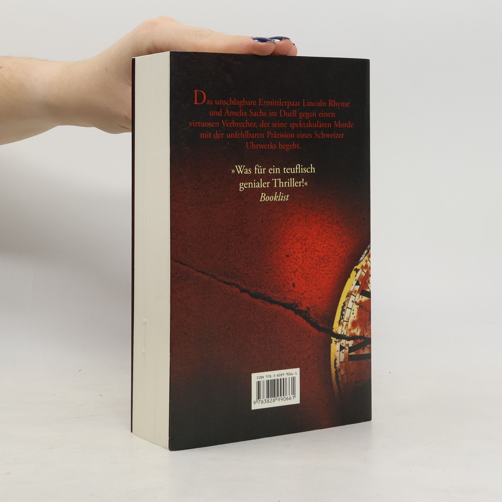 Beim kalten Vollmond: fünf vor Mord. Der 7. Fall für Lincoln Rhyme und Amelia Sachs. Kleine Standuhren, die gnadenlos die letzten Sekunden im Leben der Opfer herunterzählen – sie sind das unverwechselbare Markenzeichen des „Uhrmachers“. Lincoln Rhyme und Amelia Sachs jagen einen Serienkiller, der seine Morde mit der unfehlbaren Präzision eines Schweizer Uhrwerks begeht. Und sie erhalten dabei unschätzbare Hilfe von Kathryn Dance – einer weltweit anerkannten Verhörspezialistin, die Verbrecher zuverlässiger entlarven kann als ein Lügendetektor. Doch der Uhrmacher ist den Ermittlern stets einen Schritt voraus und irgendwo im Verborgenen tickt ein Zeitzünder unerbittlich gegen Null ...Deavers neuer Megathriller wird Ihnen buchstäblich die Zeit vertreiben ...