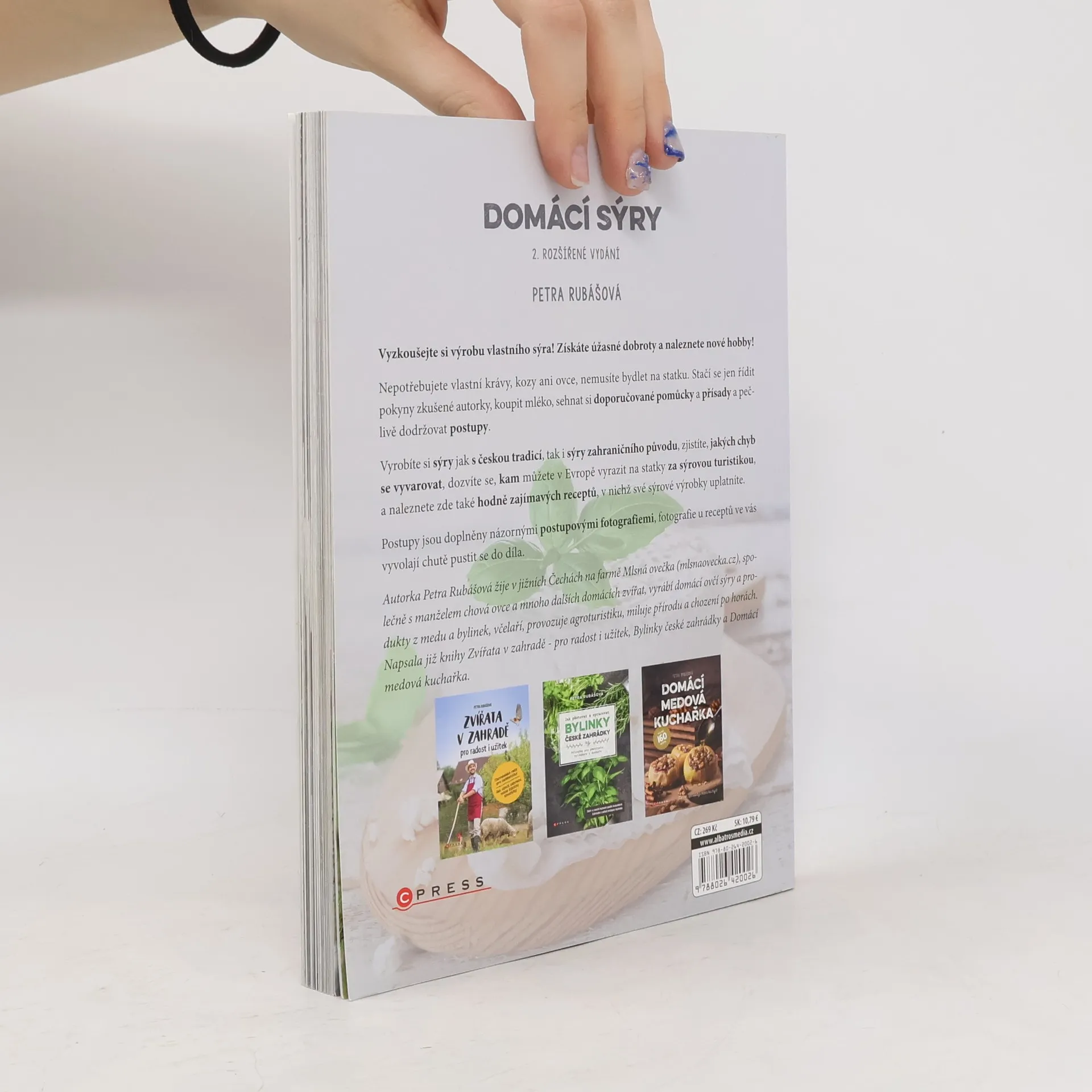 Vyzkoušejte si výrobu vlastního sýra! Získáte úžasné dobroty a naleznete nové hobby! Nepotřebujete vlastní krávy, kozy ani ovce, nemusíte bydlet na statku. Stačí se jen řídit pokyny zkušené autorky, koupit mléko, sehnat si doporučované pomůcky a přísady a pečlivě dodržovat postupy. Vyrobíte si sýry jak s českou tradicí, tak i sýry zahraničního původu, zjistíte, jakých chyb se vyvarovat, dozvíte se, kam můžete v Evropě vyrazit na statky za sýrovou turistikou, a naleznete zde také hodně zajímavých receptů, v nichž své sýrové výrobky uplatníte. Postupy jsou doplněny názornými postupovými fotografiemi, fotografie u receptů ve vás vyvolají chutě pustit se do díla. Autorka Petra Rubášová žije v jižních Čechách na farmě Mlsná ovečka (mlsnaovecka.cz), společně s manželem chová ovce a mnoho dalších domácích zvířat, vyrábí domácí ovčí sýry a produkty z medu a bylinek, včelaří, provozuje agroturistiku, miluje přírodu a chození po horách. Napsala již knihy Zvířata v zahradě - pro radost i užitek, Bylinky české zahrádky a Domácí medová kuchařka. 2., rozšířené vydání.